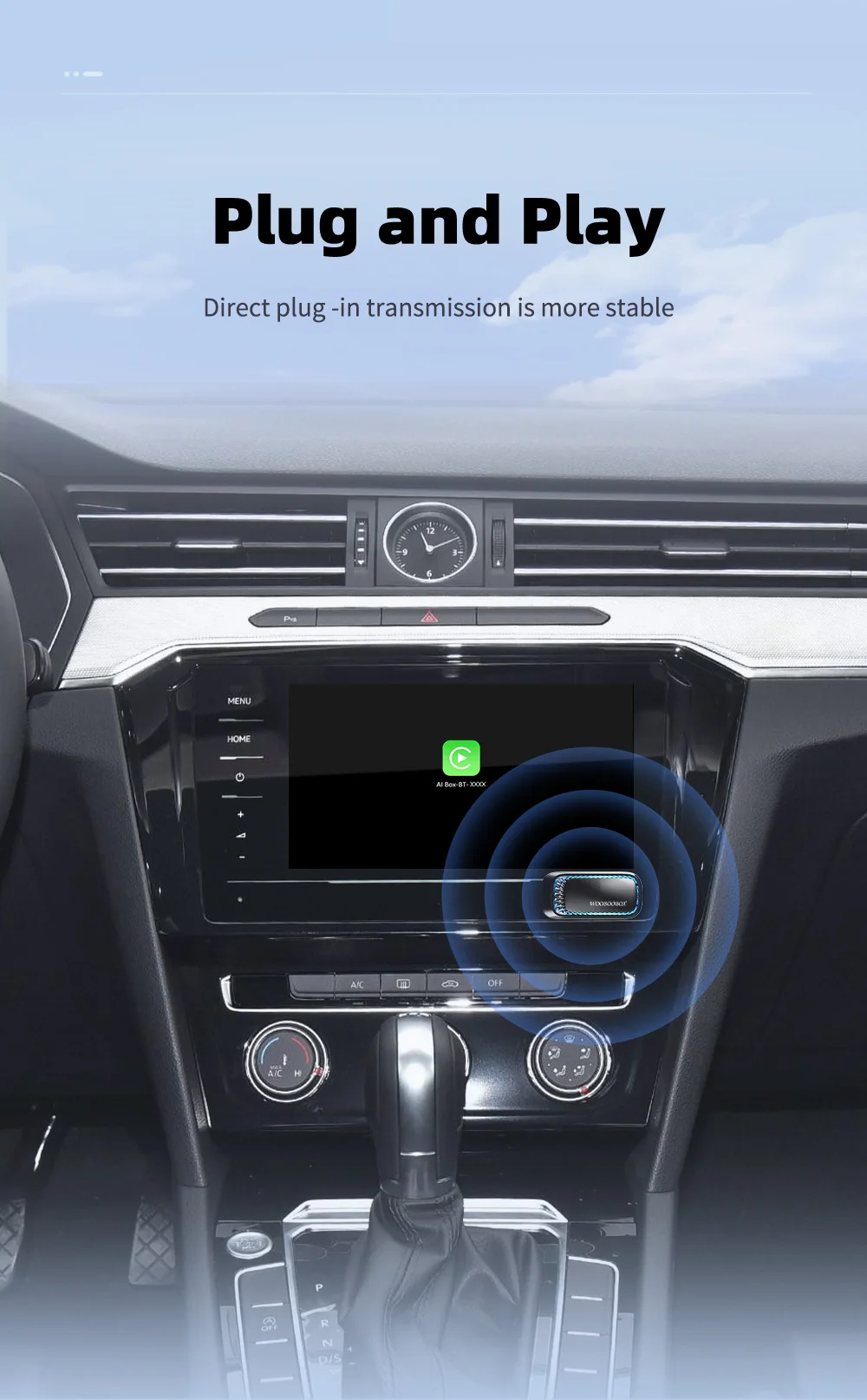 О: Наш блок CarPlay Ai должен работать на проводном CarPlay (проводной CarPlay приходит после того, как кабель соединяет iPhone с автомобильным USB/Type-C) для преобразования в беспроводную функцию CarPlay.