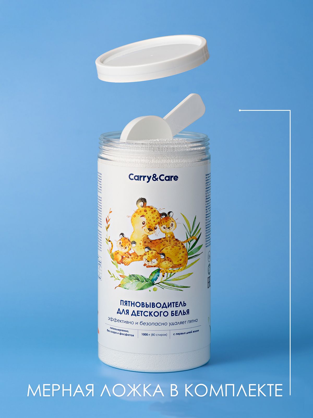 Carry&Care, Кислородный пятновыводитель отбеливатель для стирки детского белья, для белого и цветного белья, универсальный перкарбонат натрия в чудо гранулах, 1000 г