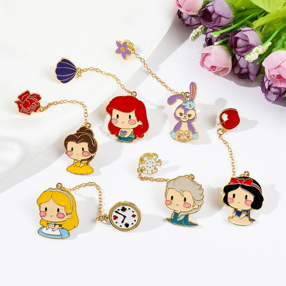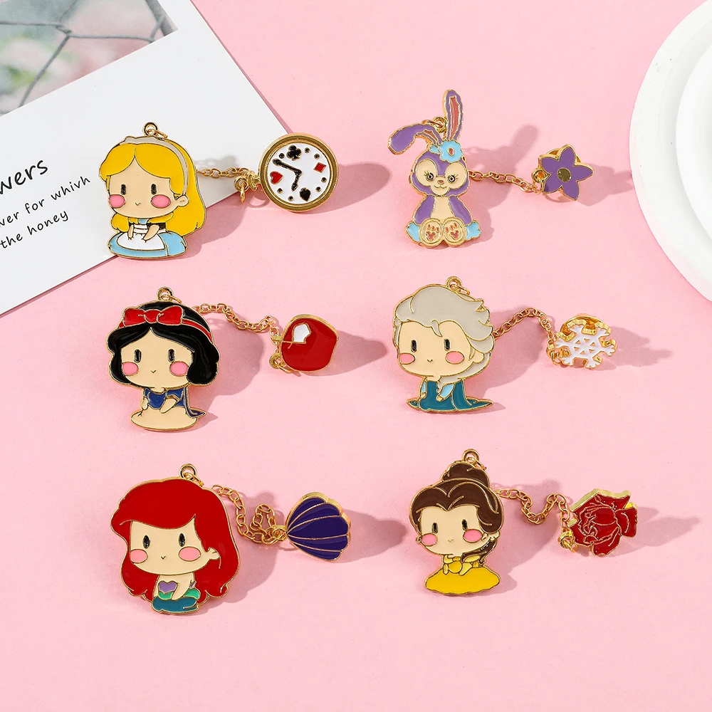 Cartoon Alice in Wonderland Snow White The Little Mermaid Elsa Princess Lapel Pins For Backpack Brooches for Women Jewelry Gifts