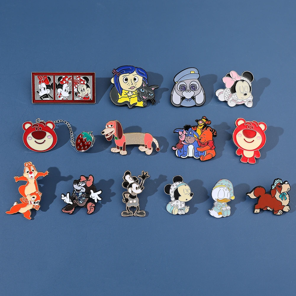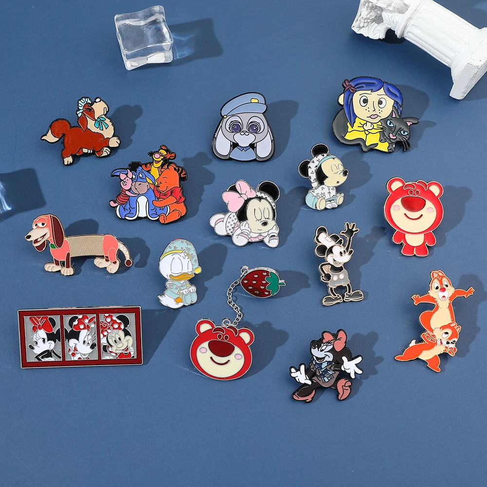 Cartoon Mickey Minnie Mouse Lapel Pins Cute Chip Dale Metal Enamel Brooches Kawaii Donald Duck Badges for Backpack Gift for Kids