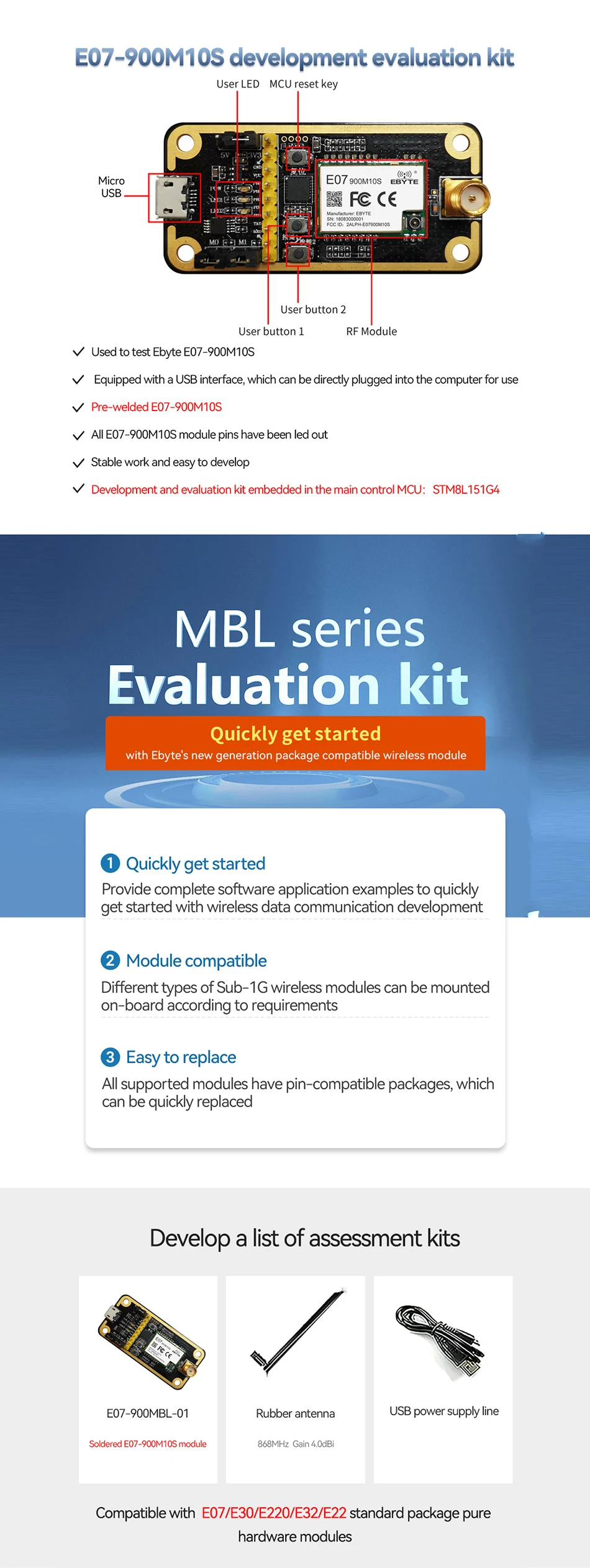 CC1101 868 МГц 915 МГц макетный комплект Ebyte E07-900MBL-01 припаянная фотография совместимая с E07/E30/E220/E32/E22 IoT