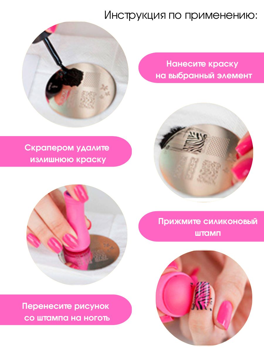 Описание: Краска для стемпинга для создания четкого, эффектного дизайна на ногтях, при помощи штампа и трафарета.