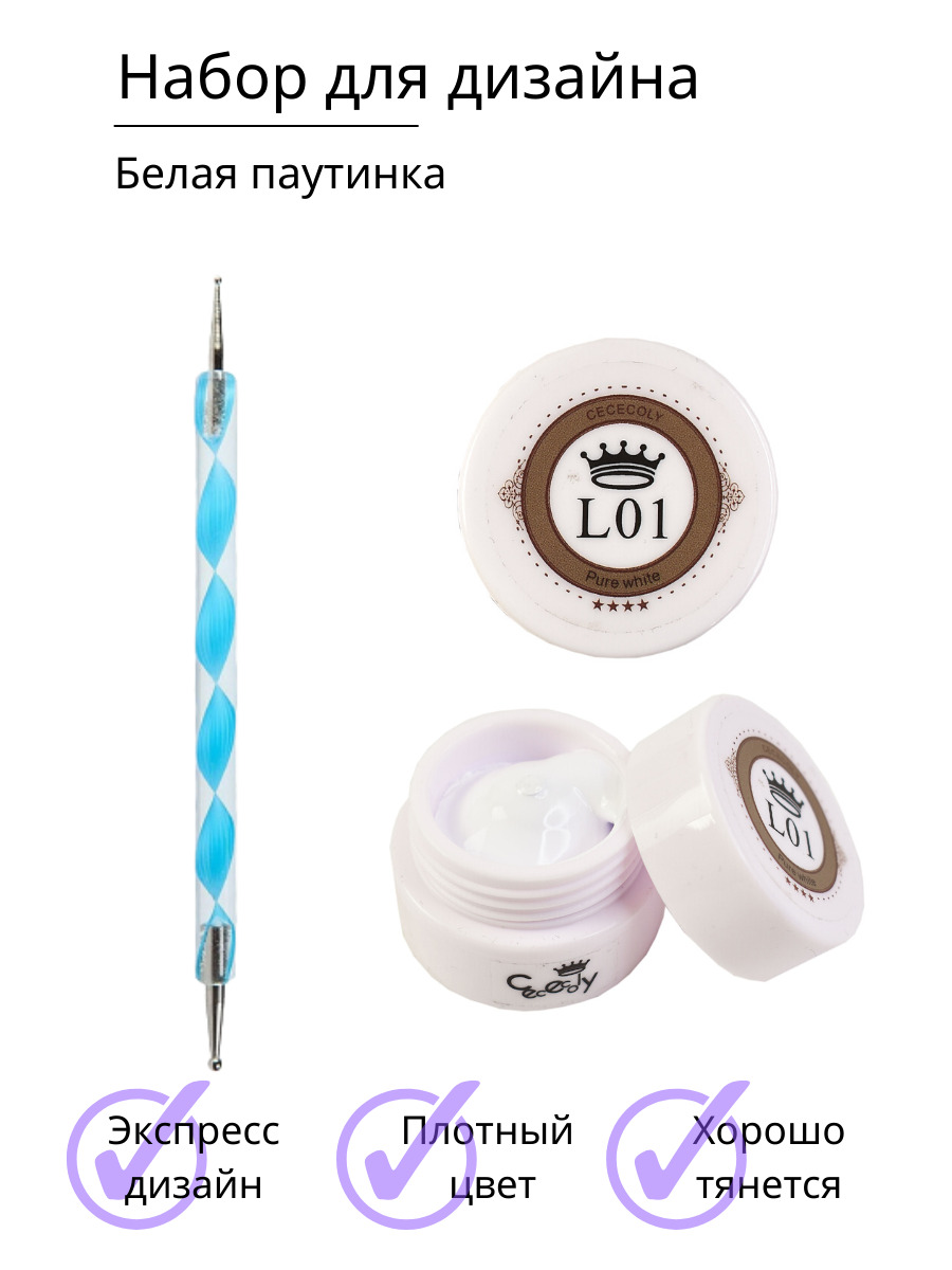Cececoly Набор гелевой краски Паутинка 5 мл. и дотс для дизайна, маникюра