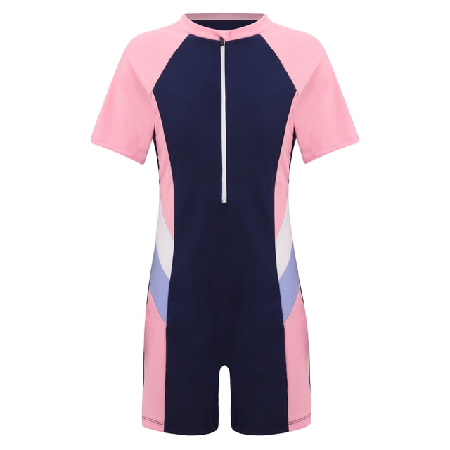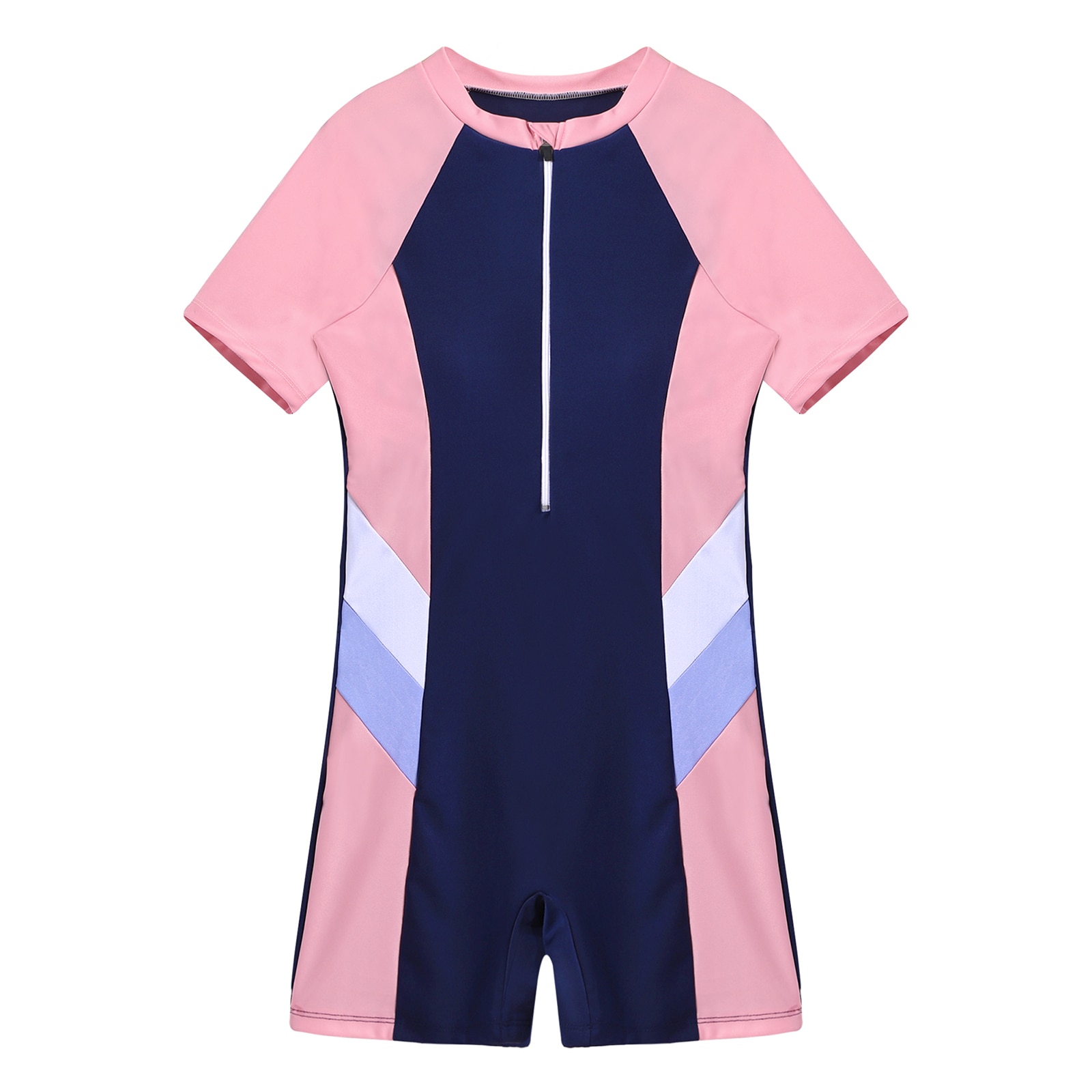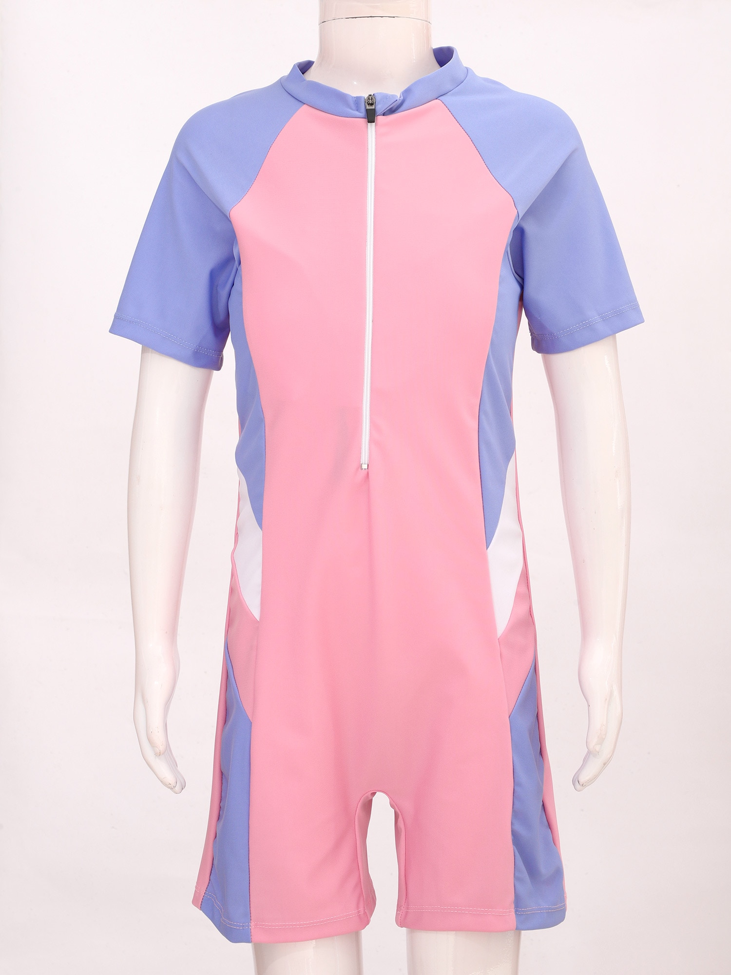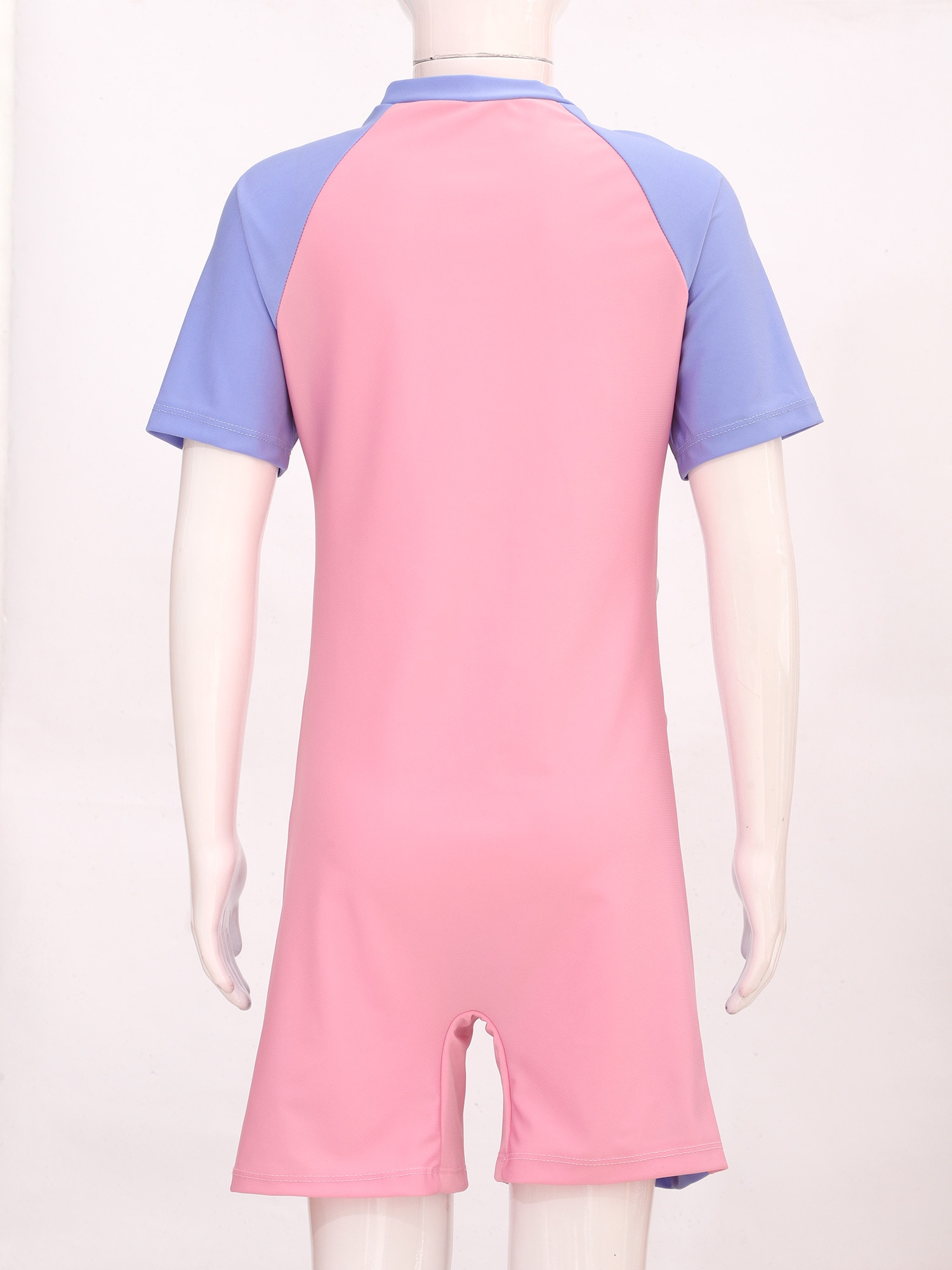 Цельный купальник для маленьких девочек, гидрокостюм с защитой от сыпи, комбинезон с короткими рукавами и мягкой молнией, купальник, пляжный купальный костюм для серфинга и бассейна
