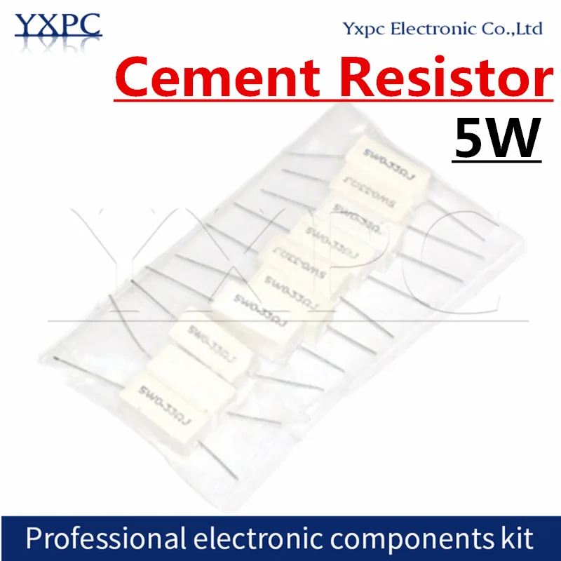 Цементный резистор 5 Вт 5%, 10 шт., сопротивление мощности 0,1 ~ 100 к, 0.1R 0.5R 1R 10R 100R 0,22 0,33 0,5 1 2 5 8 10 15 20 25 30 100 1 к 10 кОм