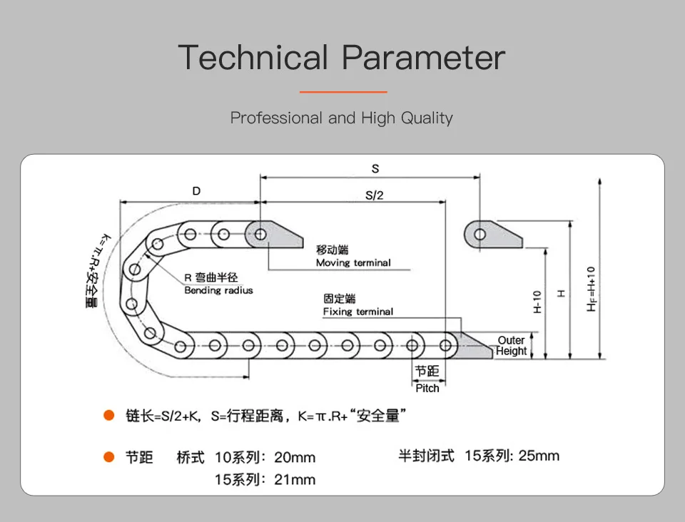 Цепь для передачи кабеля, пластиковая, с концевыми соединителями, для лазерного станка