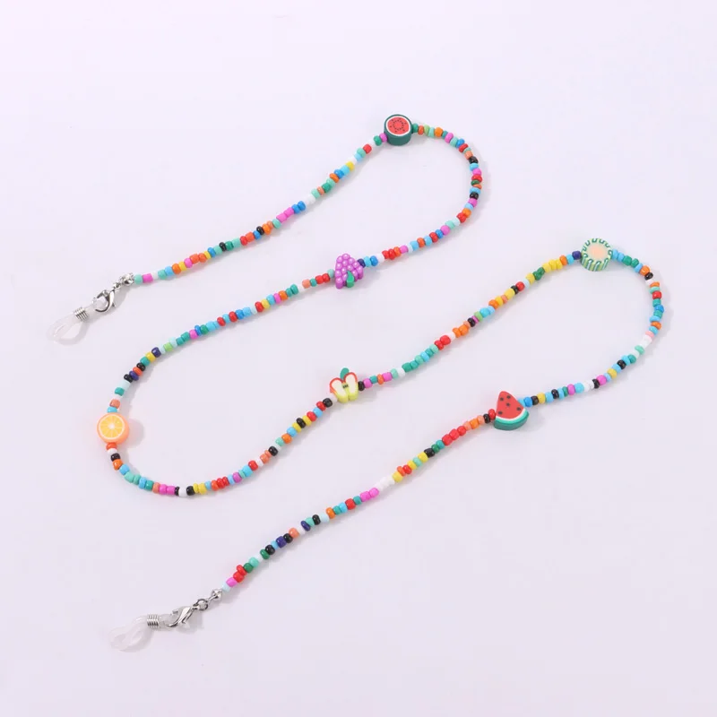 Цепочка для очков, с разноцветными фруктовыми бусинами, винтажная, женская, нескользящая, на шею