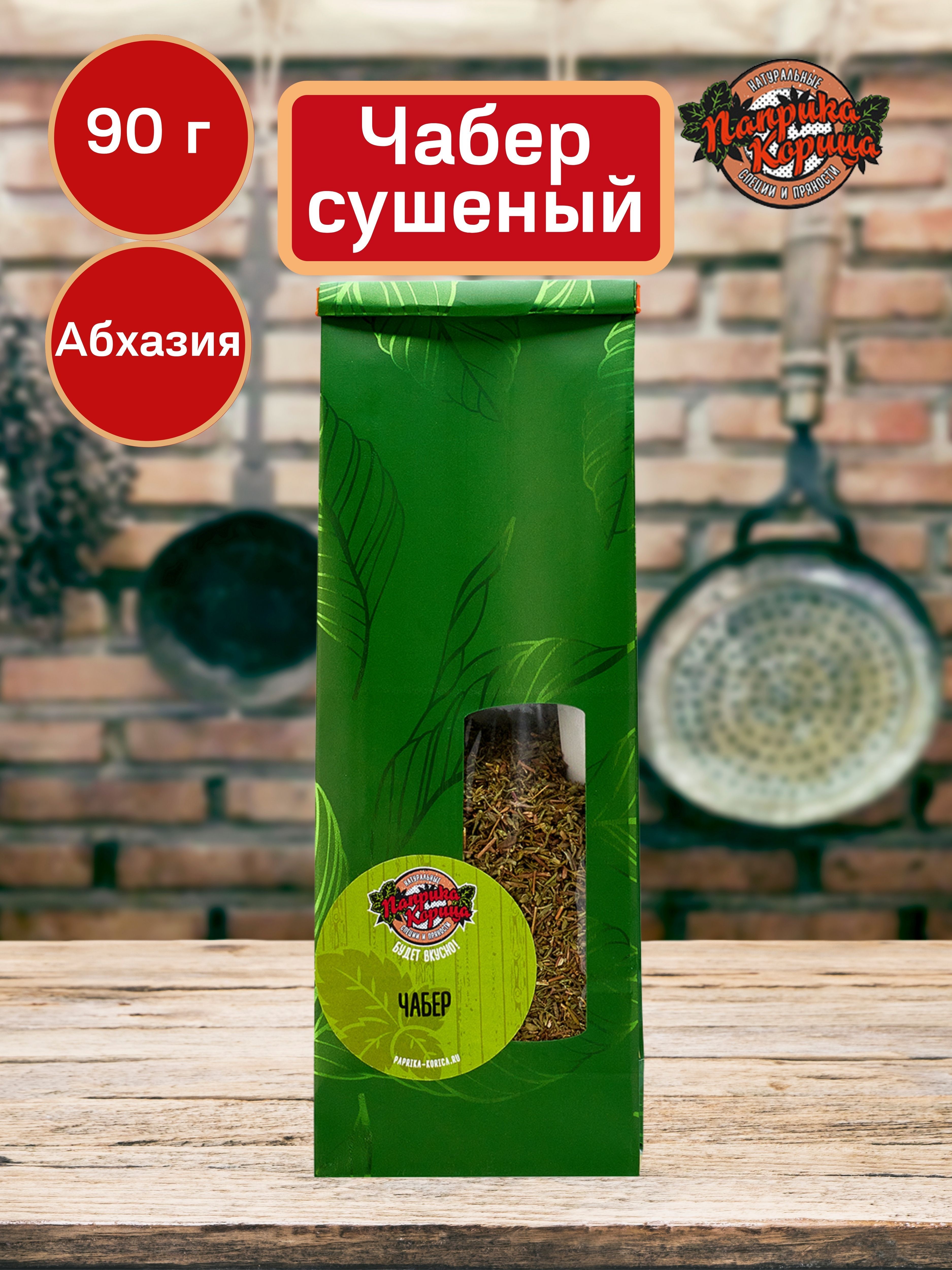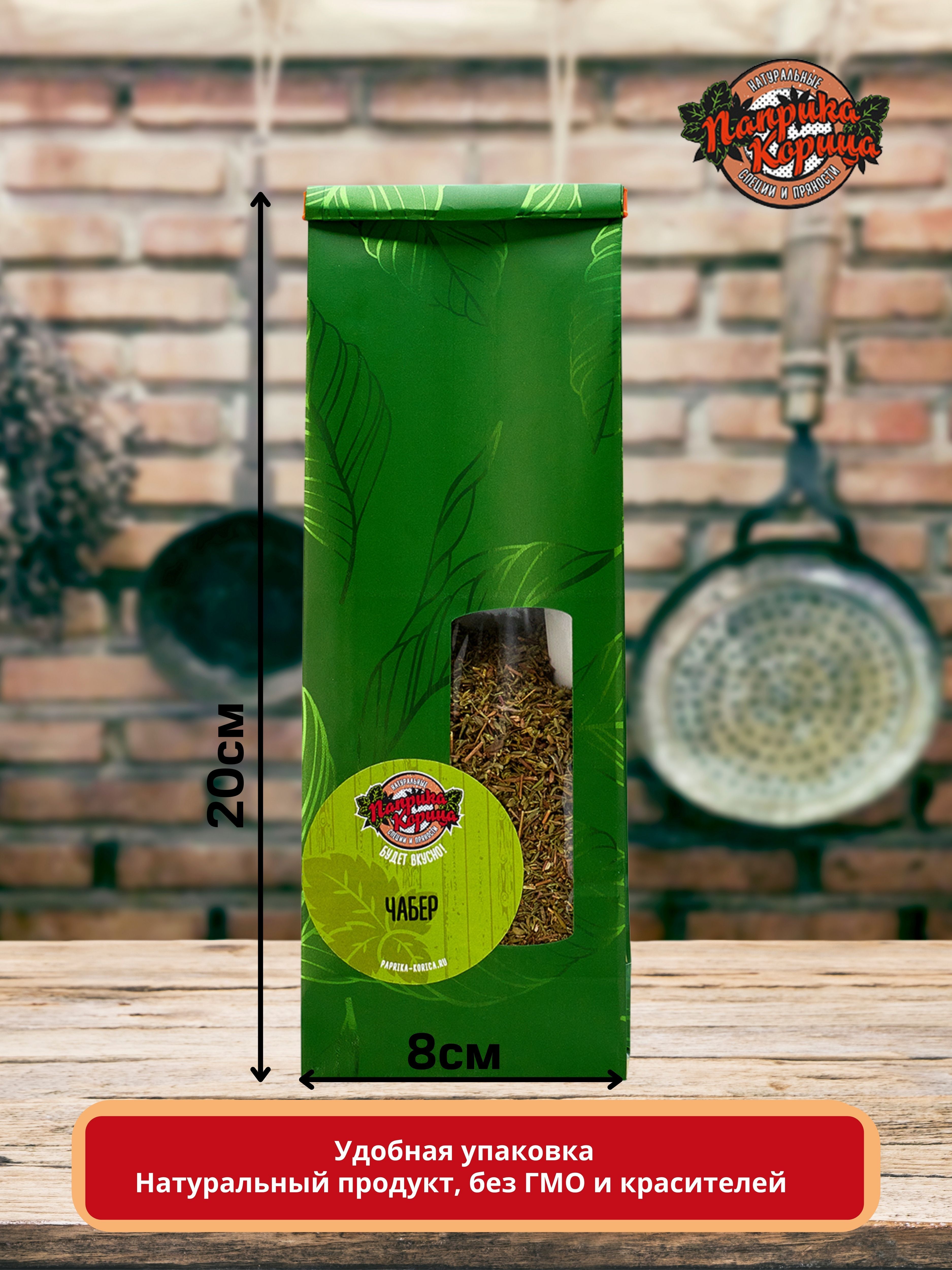 Специя упакована в герметичный пищевой дой-пак пакет с зажимом. Чабер надолго сохранит свой аппетитный вкус и аромат.