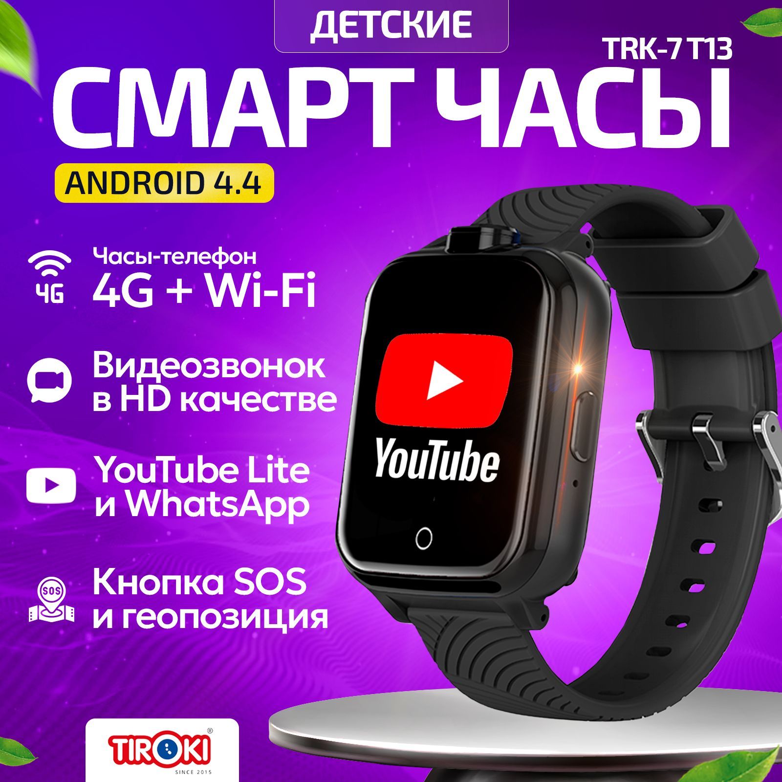 TIROKI TRK-07 с GPS, с видеозвонком, сим картой и 4G сотовой связью, кнопкой SOS, голосовым, возможностью просматривать видео на YouTub, загружать приложения. Часы работают на встроенной системе Android версии 4.4, что дает им ранее несуществующие преимущества.