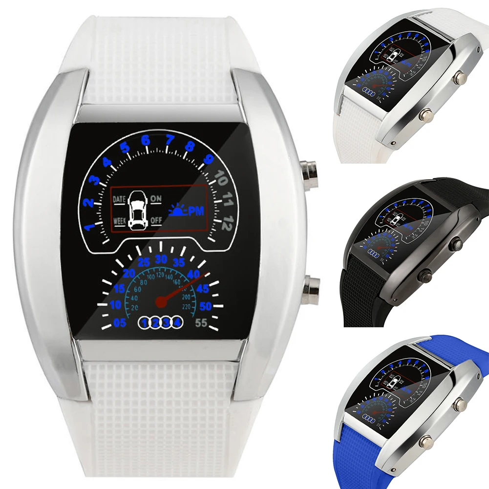 Светодиодный цифровой часы Instru для мужчин t панель дизайн мужские черные резиновые Спидометр цифровые наручные часы для мужчин мальчиков подарок