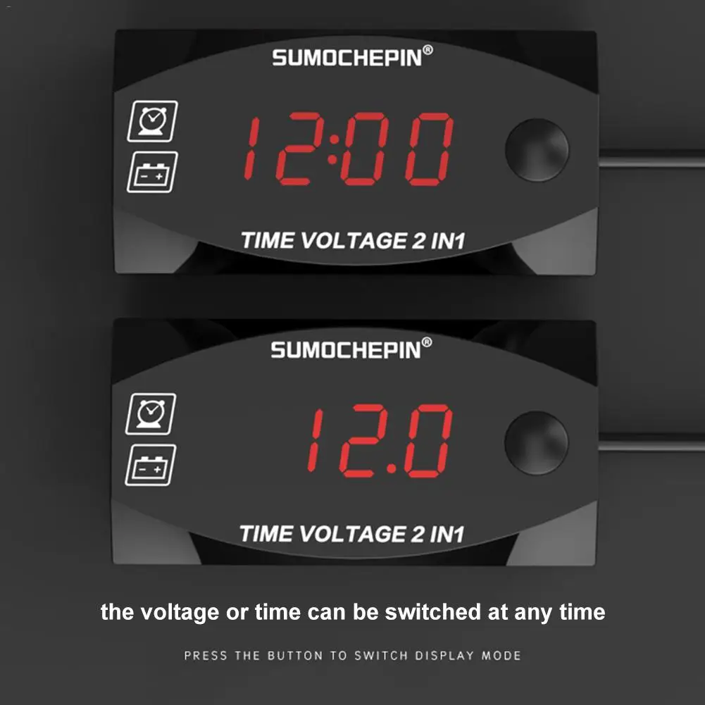 1. 2 в 1 расписание вольтметра мотоцикла, и напряжение или время может быть переключено в любое время.