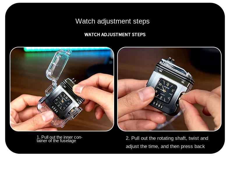 Эта Зажигалка также используется как часы и USB-фонарик, что делает ее удобным инструментом, который можно всегда иметь при себе. Благодаря перезаряжаемой батарее вы можете использовать эту зажигалку для многих целей, прежде чем ее подзаряжать.