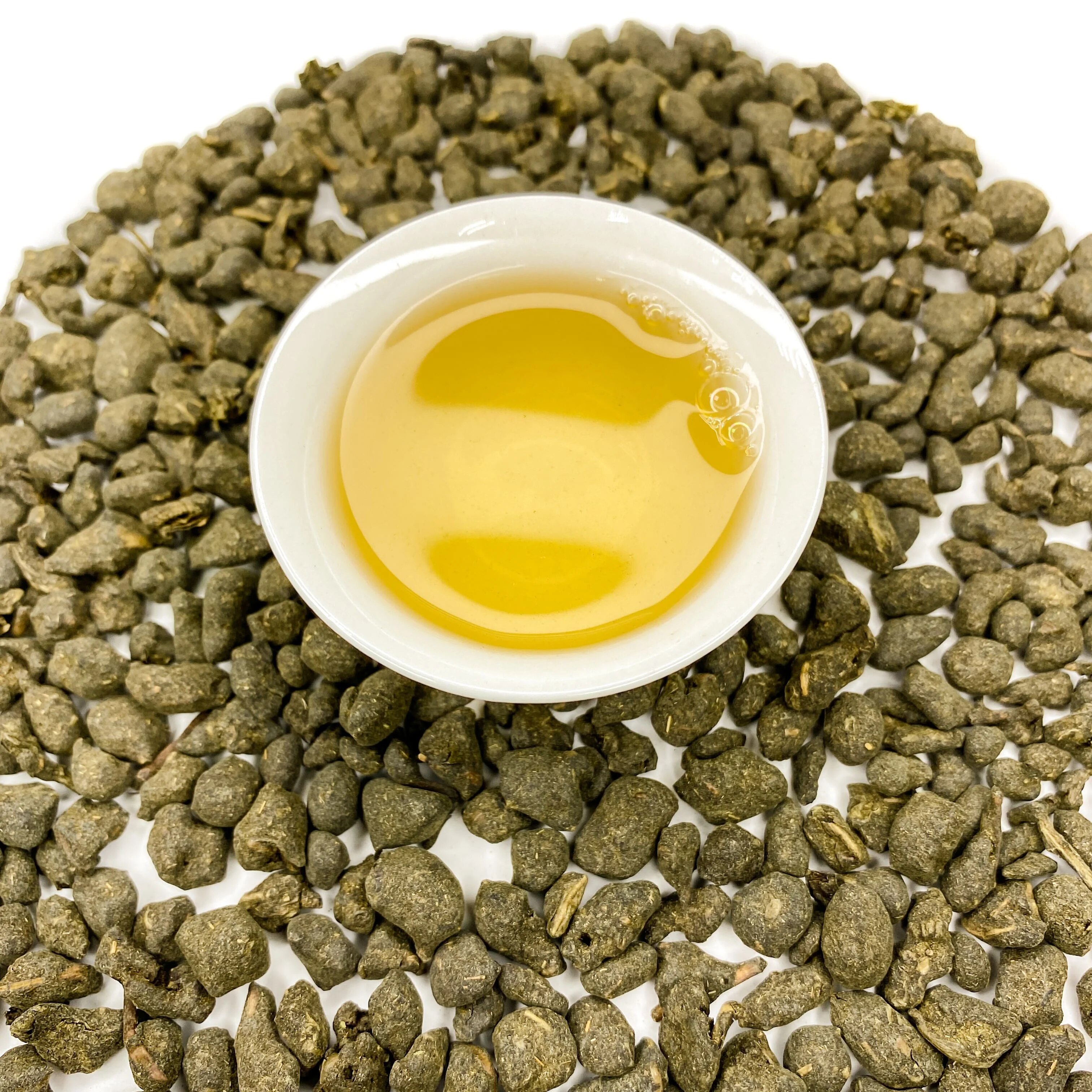 Внешность: оливково-зеленые комочки скрученных чайных побегов