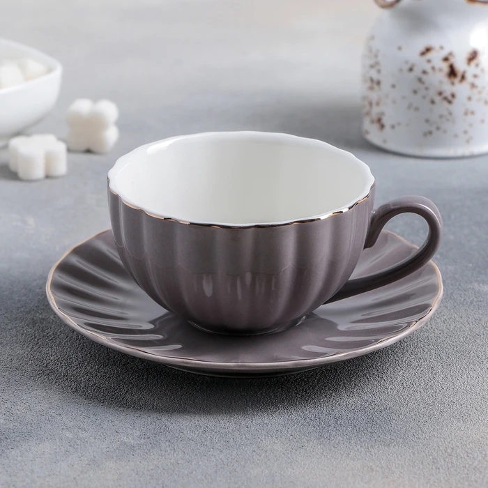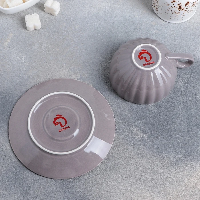 Чайная пара «Вивьен»: чашка 200 мл, блюдце d=15 см, цвет серый