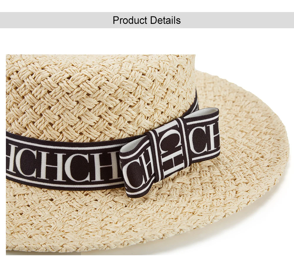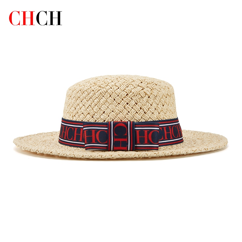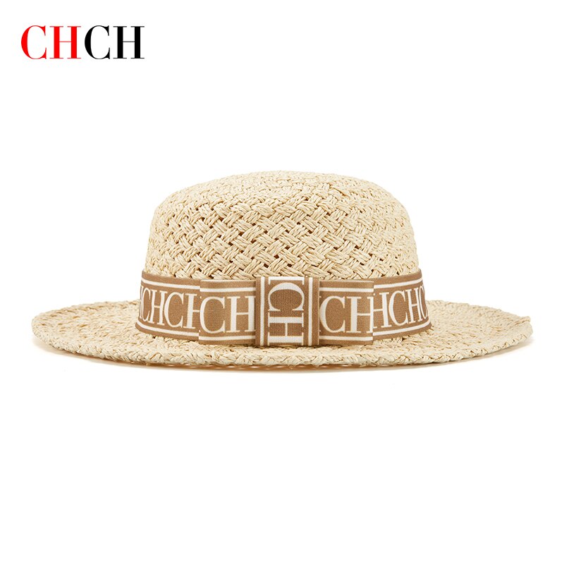 CHCH 2023 Модная Ретро Женская плоская соломенная шляпа от солнца Элегантная женская пляжная шляпа