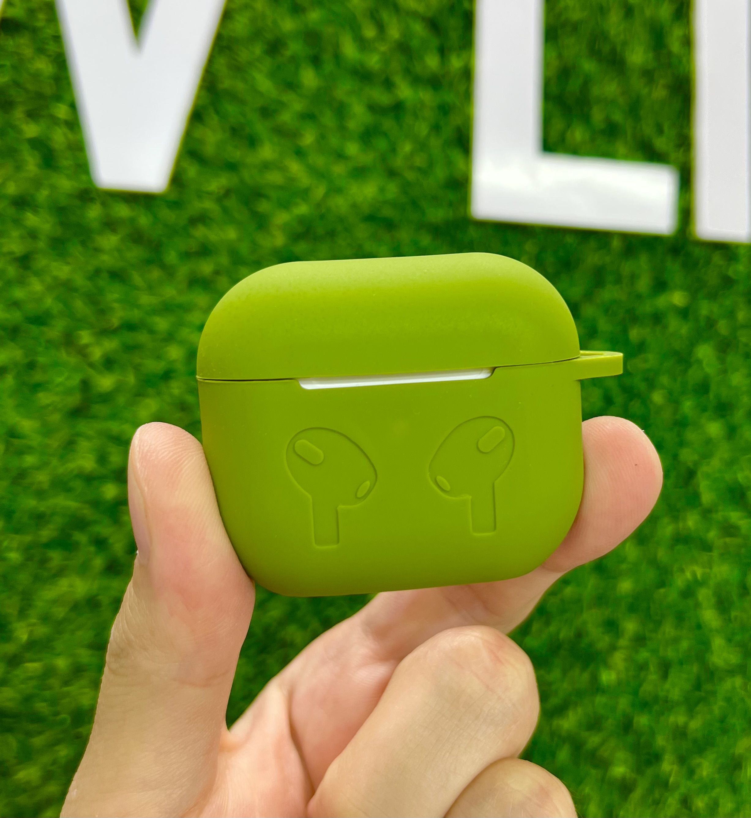 Описание: Чехол из противоударного плотного силикона зелёного цвета на беспроводные наушники Airpods 3.
