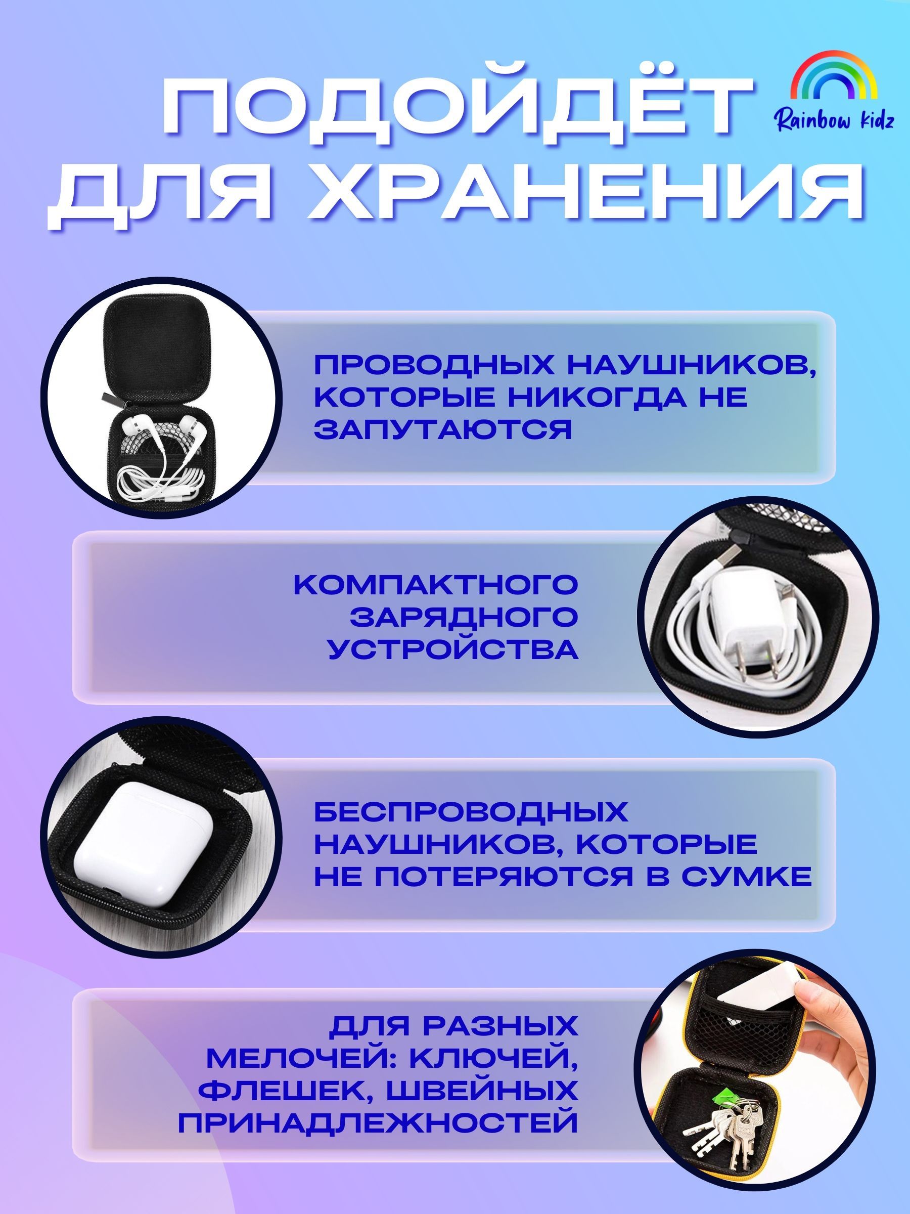 Описание: Оригинальный чехол для мелочей и наушников - маленький и стильный. Чехол для airpods pro на молнии для наушников, и других небольших гаджетов, надежно защитит ваши аксессуары. Мягкая ткань подкладки футляра для аирподс (аирподсов, эирподс) про защитит содержимое от царапин, а жесткий корпус от удара при падении. Компактный и легкий органайзер для кабелей помещается на ладони. Очень удобно хранить в кейсе для мелочей проводные наушники, кабели, зарядные устройства, флешки, карты памяти, наушники любой фирмы honor choice (xiaomi, хонор, huawei) и другие мелкие принадлежности. Имея такие компактные размеры, чехол для проводов может поместиться даже в карман куртки, рюкзак или сумку. Подойдет для ребенка, в него можно разместить ключи или наушники, чтобы ничего не потерялось. Коробка для наушников послужит удобным и надежным защитником для ваших вещей. Данный чехол поможет Вам сохранить Ваши наушники в превосходном виде на долгие годы. Это не только нужная вещь для себя, но и приятный подарок любимому, другу или коллеге. Коробочки для наушников представлен в нескольких цветах, вы точно выберете идеальный!