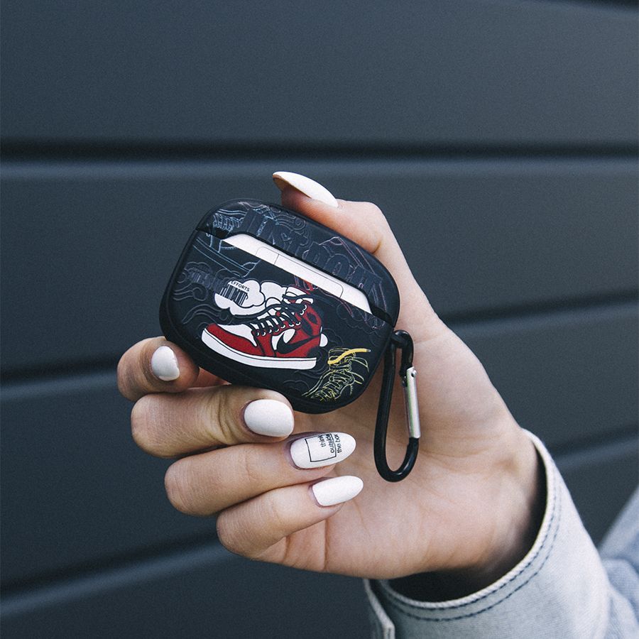 Чехол разработан специально для наушников AirPods Pro, предусматривая внутренние ячейки под размеры устройств. Вам не нужно снимать чехол для зарядки наушников, так как он имеет специальное отверстие для провода. Кроме того, у чехла есть удобный карабин или кольцо (в зависимости от комплектации) для крепления к вашим ключам, сумке или рюкзаку. Это позволяет легко носить кейс AirPods Pro с собой, а также существенно снижает вероятность его потери. Сам чехол выполнен в интересном визуальном оформлении, что сделает его эксплуатацию веселой и привлекающей окружающее внимание.