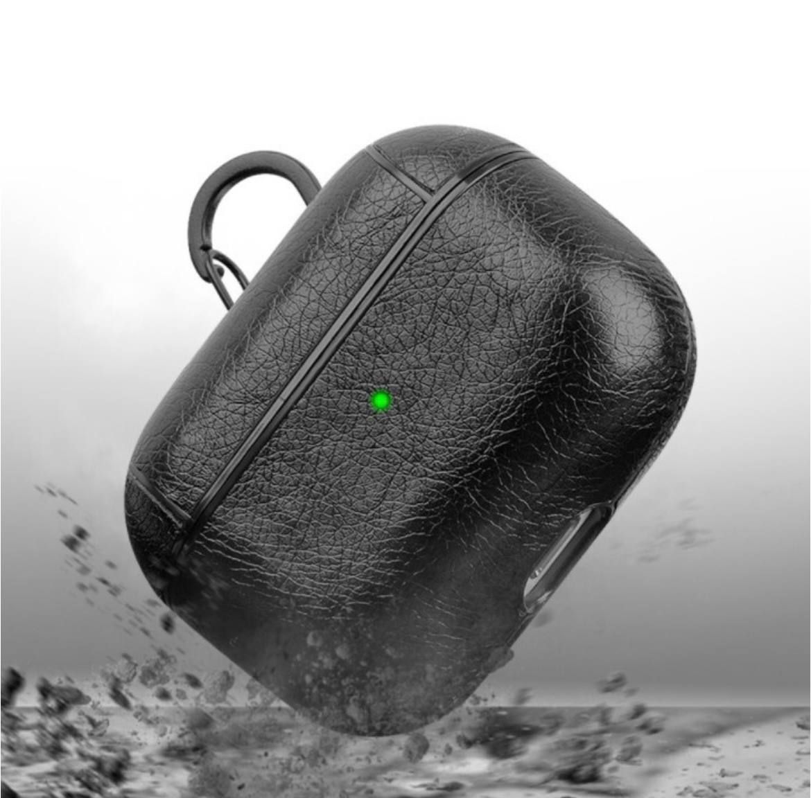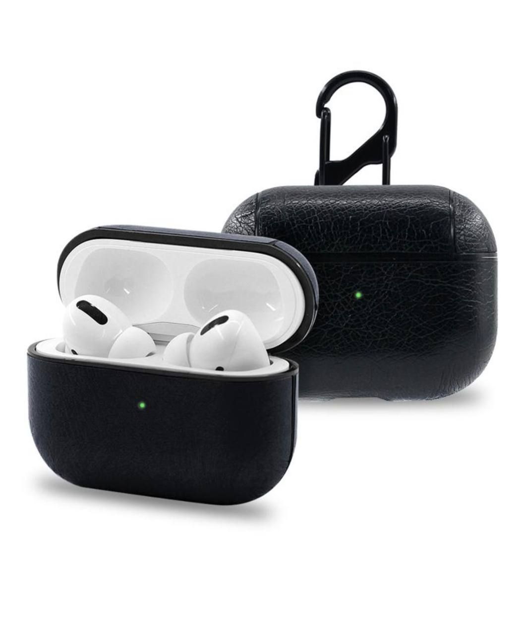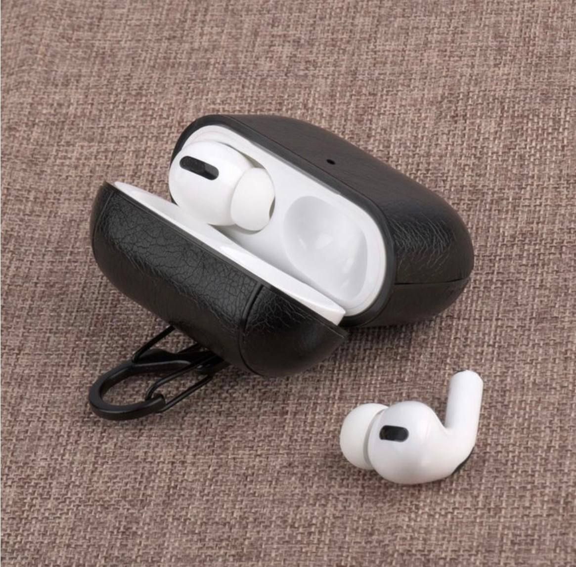 Чехол для Airpods Pro кожаный, противоударный, черный, с карабином, Чехол на Айрподс Про