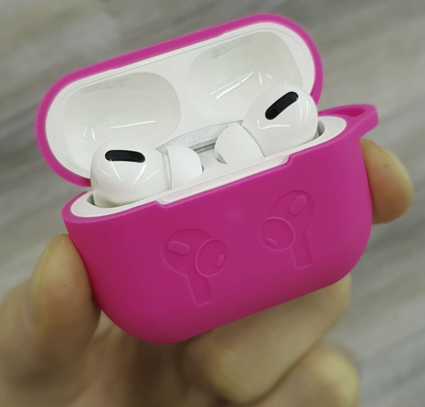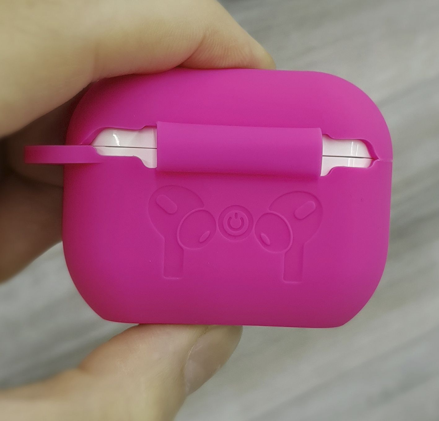 Плотно прилегает к кейсу, тем самым надёжно защищает корпус зарядного кейса от внешних воздействий. Чехол придаёт наушникам индивидуальный внешний вид. На дне чехла есть заглушка для разъёма зарядки, тем самым не нужно доставать кейс из чехла для подзарядки. Гнездо защищено от попадания влаги и грязи.
