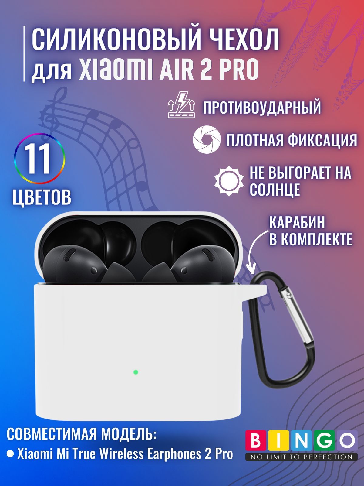 чехол для беспроводных наушников XIAOMI Mi Air 2 Pro силиконовый с карабином