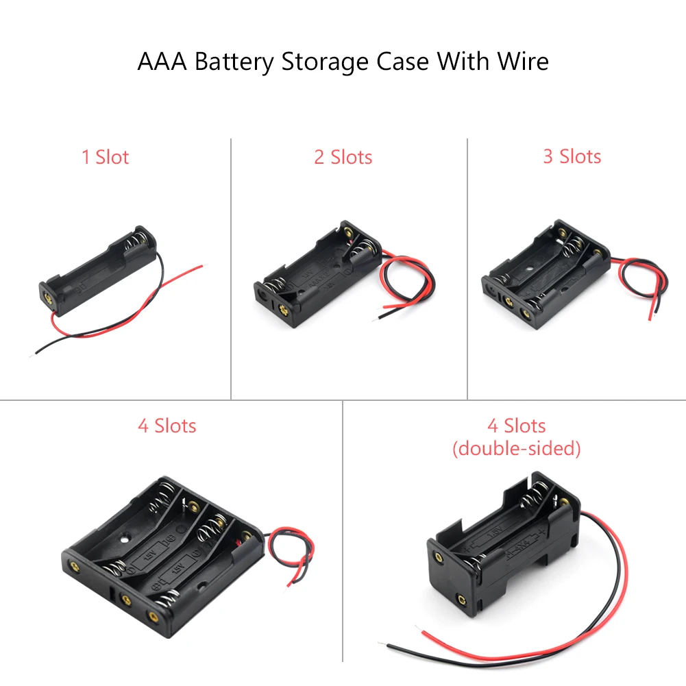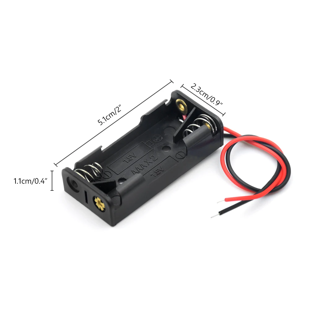 Он может содержать стандартные батареи размера AAA, как для одноразовых, так и для аккумуляторных батарей, черный и красный двухпроводный дизайн отлично подходят для легкой пайки и подключения.