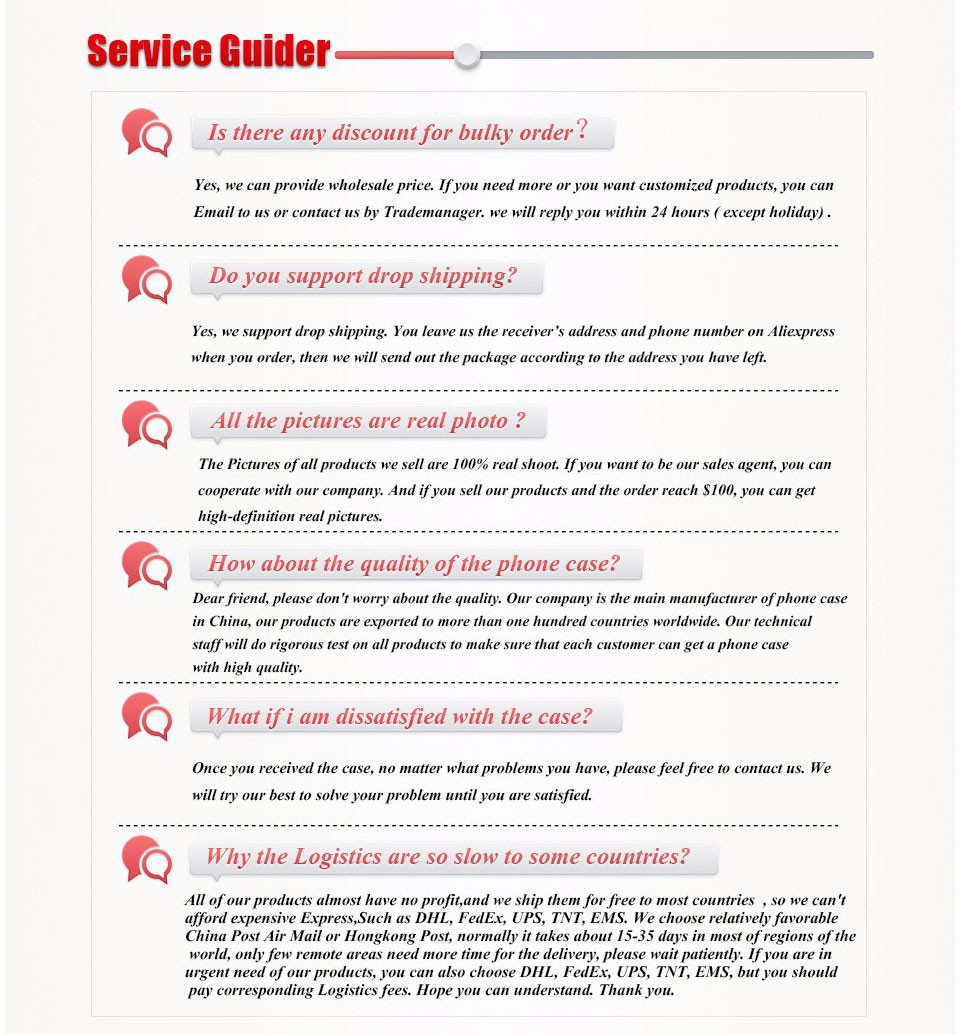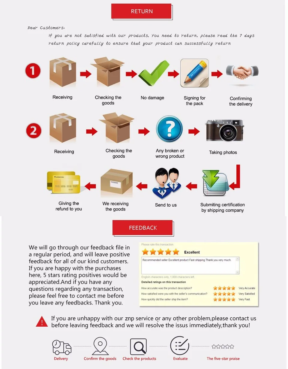 3. Если есть какие-либо вопросы, свяжитесь с нами в любое время, прежде чем открыть спор или дать нам отрицательный отзывы. Мы постараемся сделать все возможное, чтобы решить проблему, и мы не дадим вам нести потери. Спасибо за ваше понимание