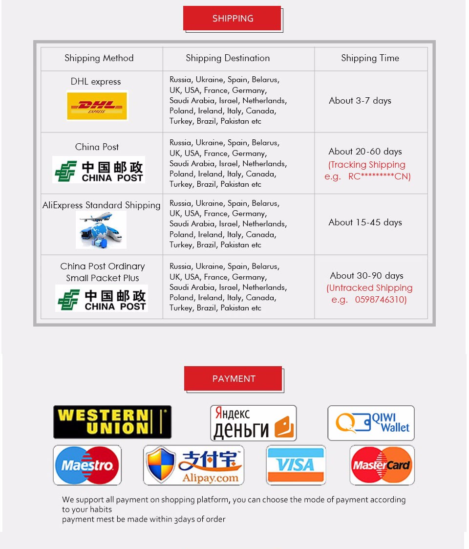 4. Опт/дропшиппинг оба поддерживаются, пожалуйста, не стесняйтесь связаться с нами, если вам нужна более Массовая Цена или более быстрая доставка.