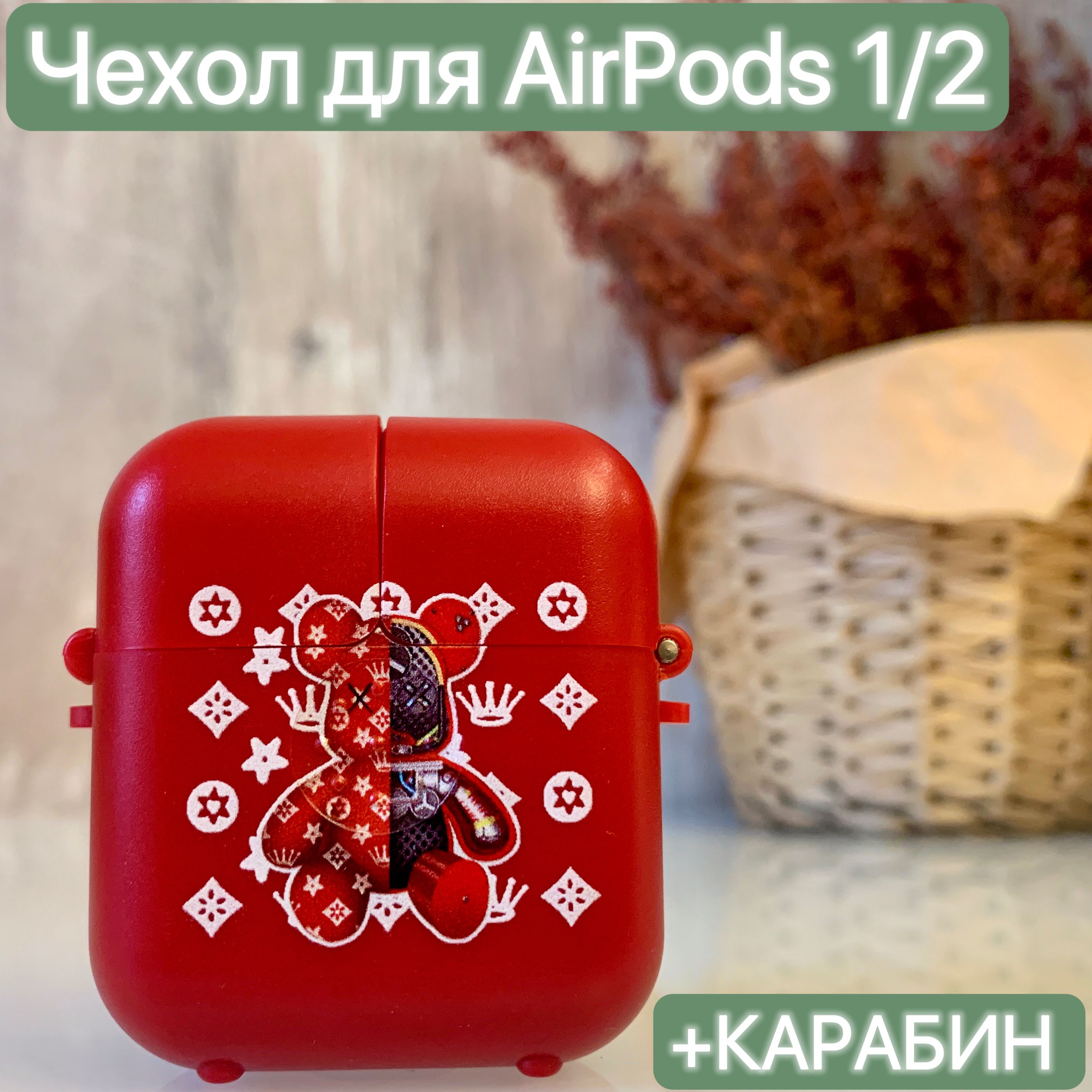 Чехол для наушников Аирподс 1/2 сделан из крепкого пластика со стойкими принтами.