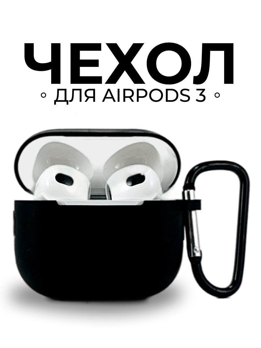 Чехол для наушников airpods 3, с карабином, силиконовый черный