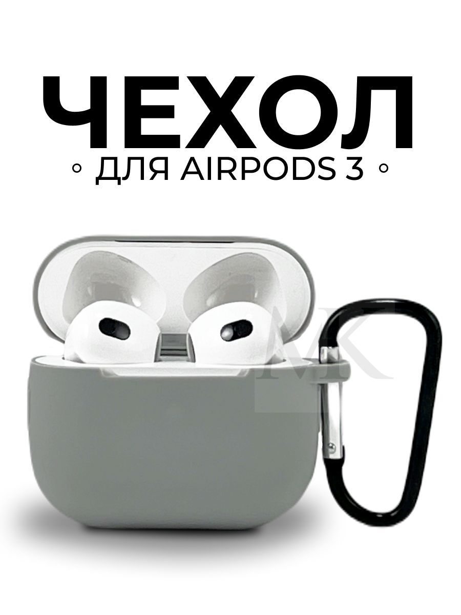 Чехол для наушников airpods 3, с карабином, силиконовый серый