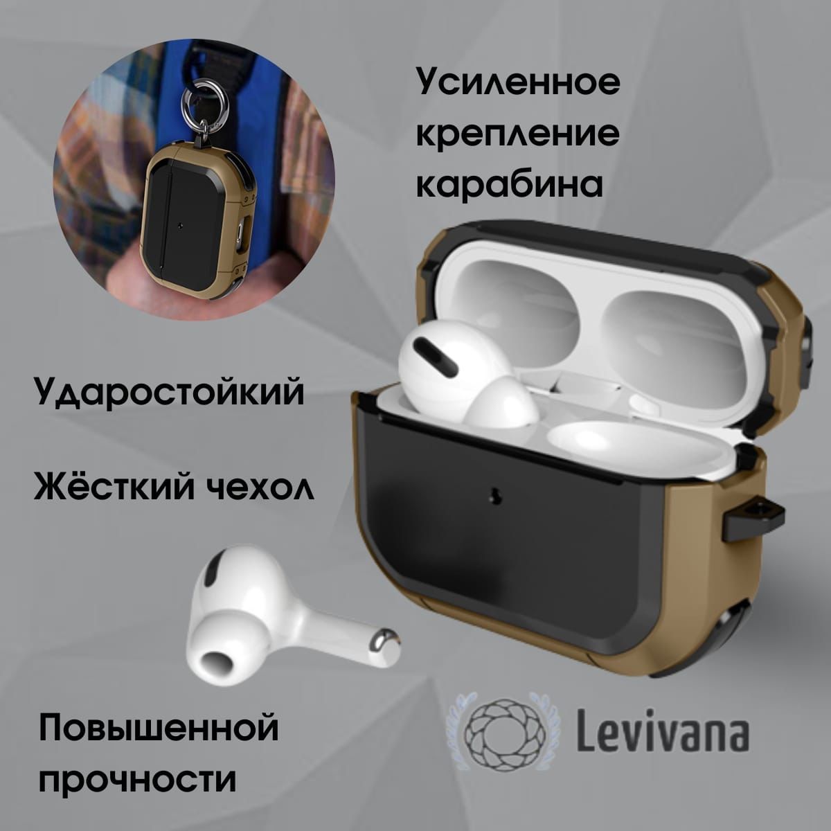 Описание: Свойства противоударного чехла с полной защитой 360 • Жесткий и прочный, высокое качество • Защитит от падений и ударов, устойчив к износу, не оставляет отпечатков пальцев, защищает устройство от пыли, грязи и повреждений, со временем не теряет внешнего вида • Приятные тактильные ощущения, на всех на этапах эксплуатации • Износостойкость и влагостойкость • Наличие выреза под зарядный разъем • Точный вырез под светодиодный индикатор с передней стороны; • Плотное прилегание к кейсу; • В комплекте идет карабин для закрепления AirPods для большей безопасности • Подходит для Apple AirPods PRO.