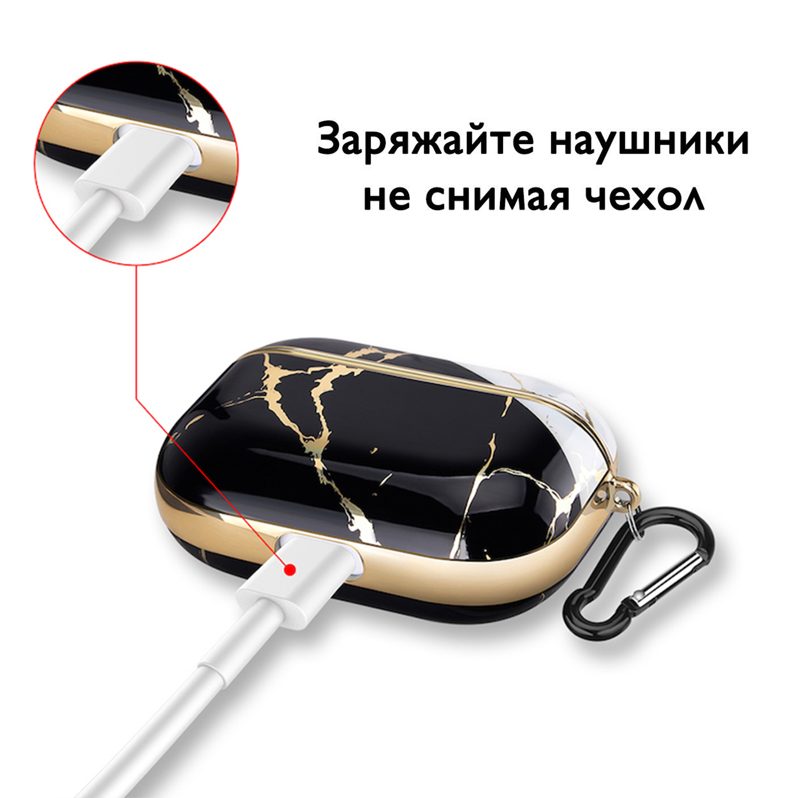 Чехол для наушников Airpods Pro, c карабином, противоударный