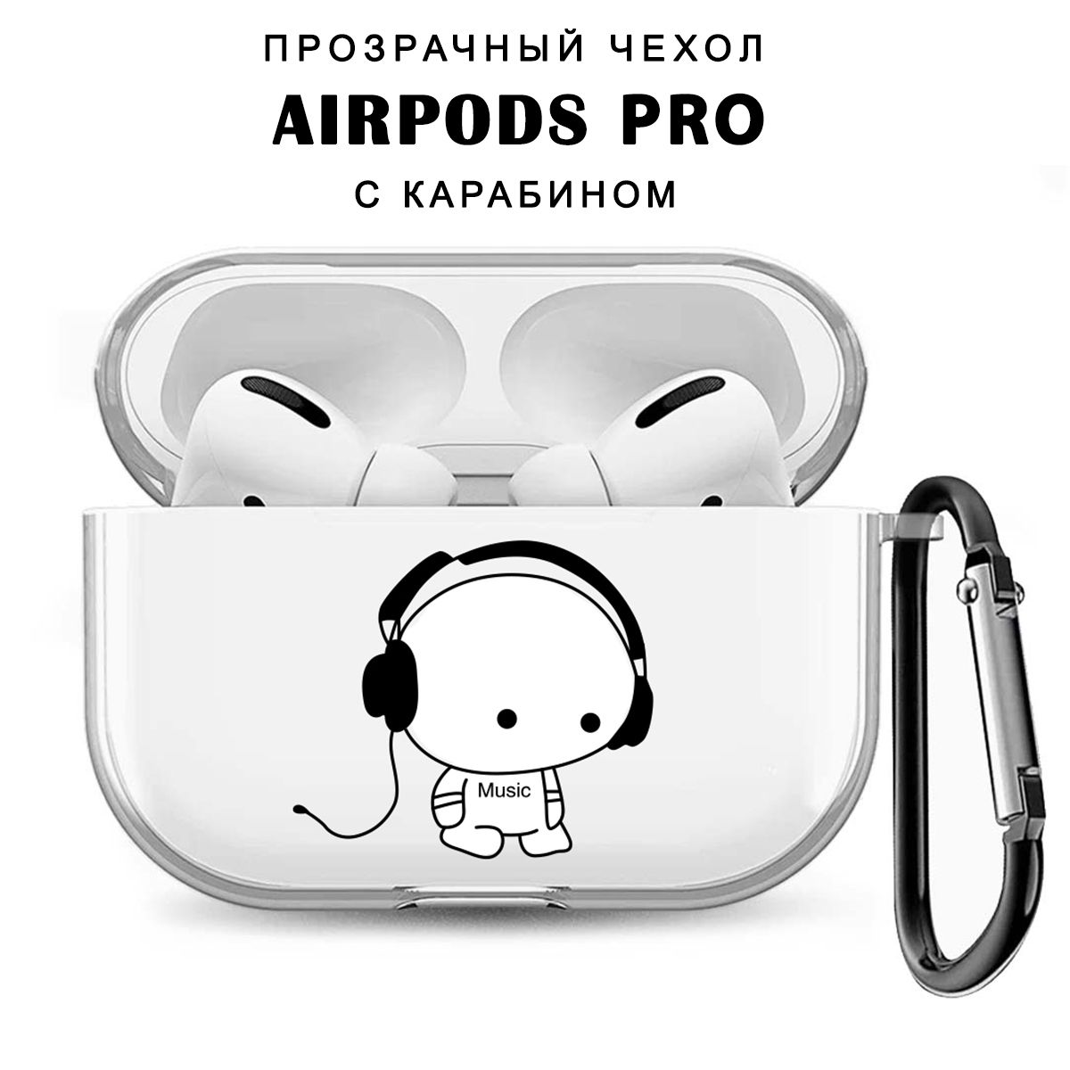 Чехол для наушников AirPods Pro ( на Аирподс Про ) силиконовый прозрачный с принтом