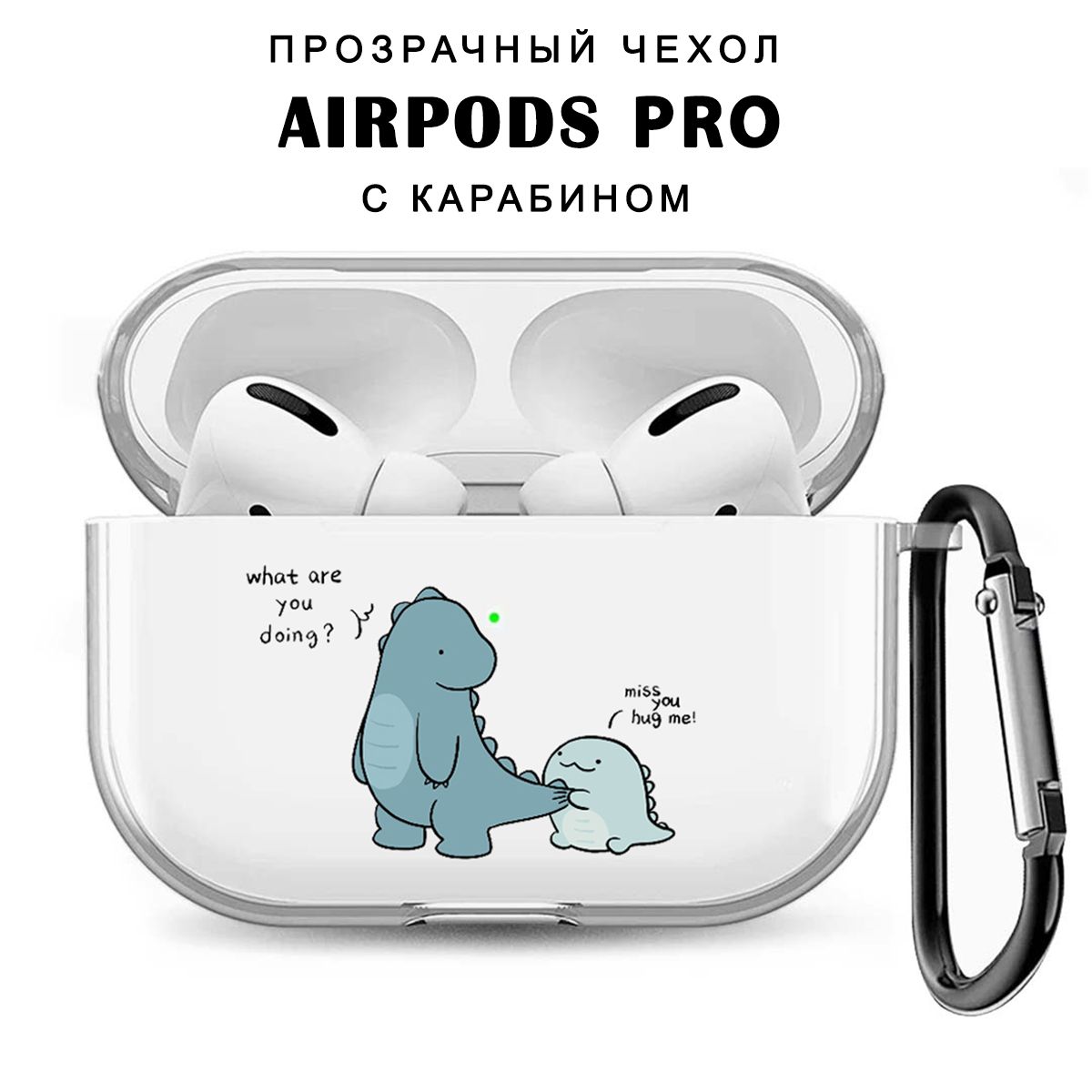 Чехол для наушников AirPods Pro ( на Аирподс Про ) силиконовый прозрачный с принтом "Дракончики"