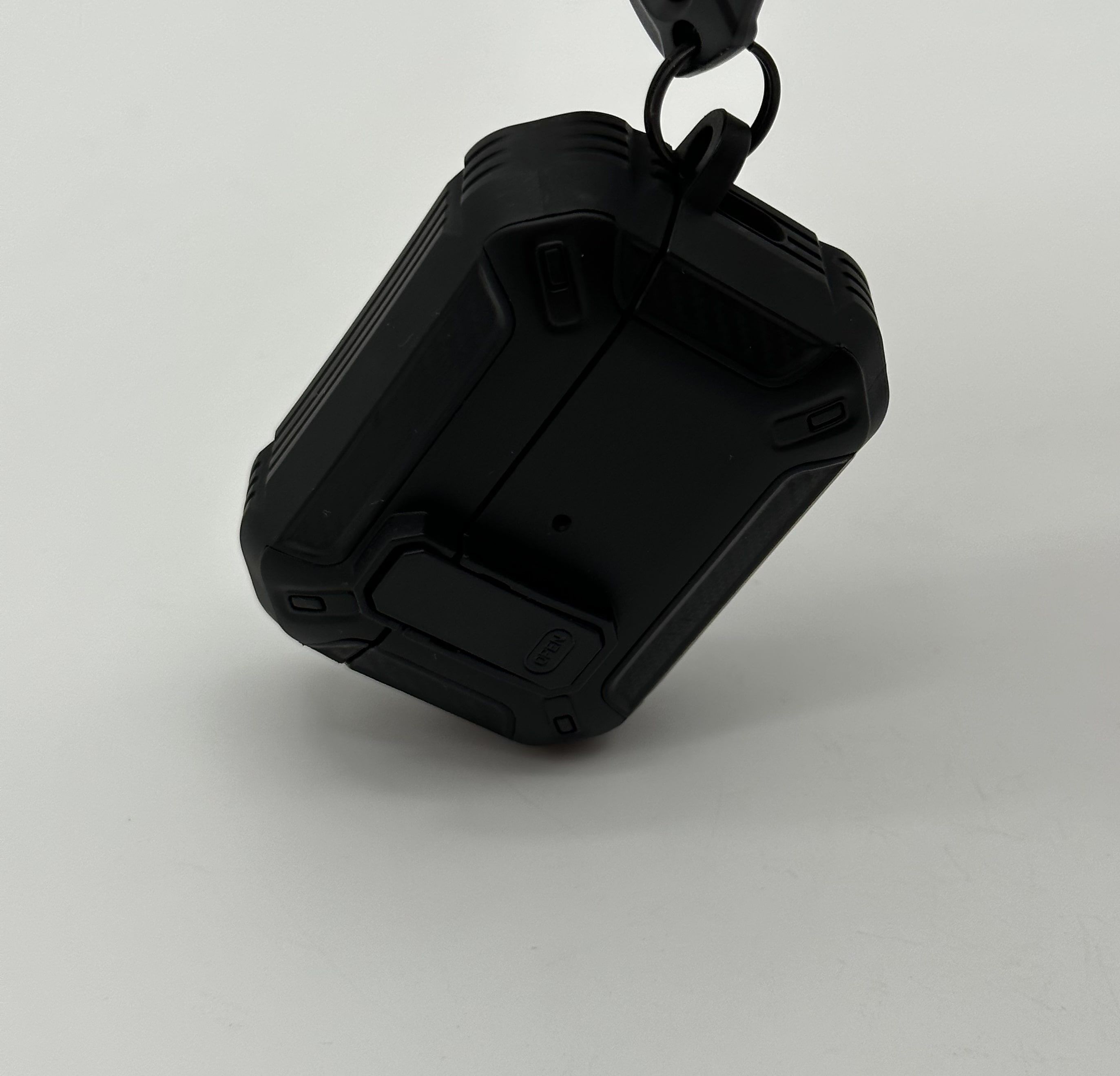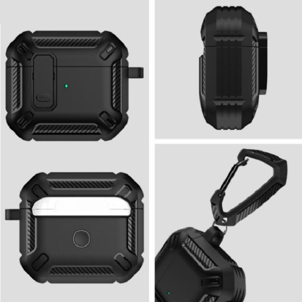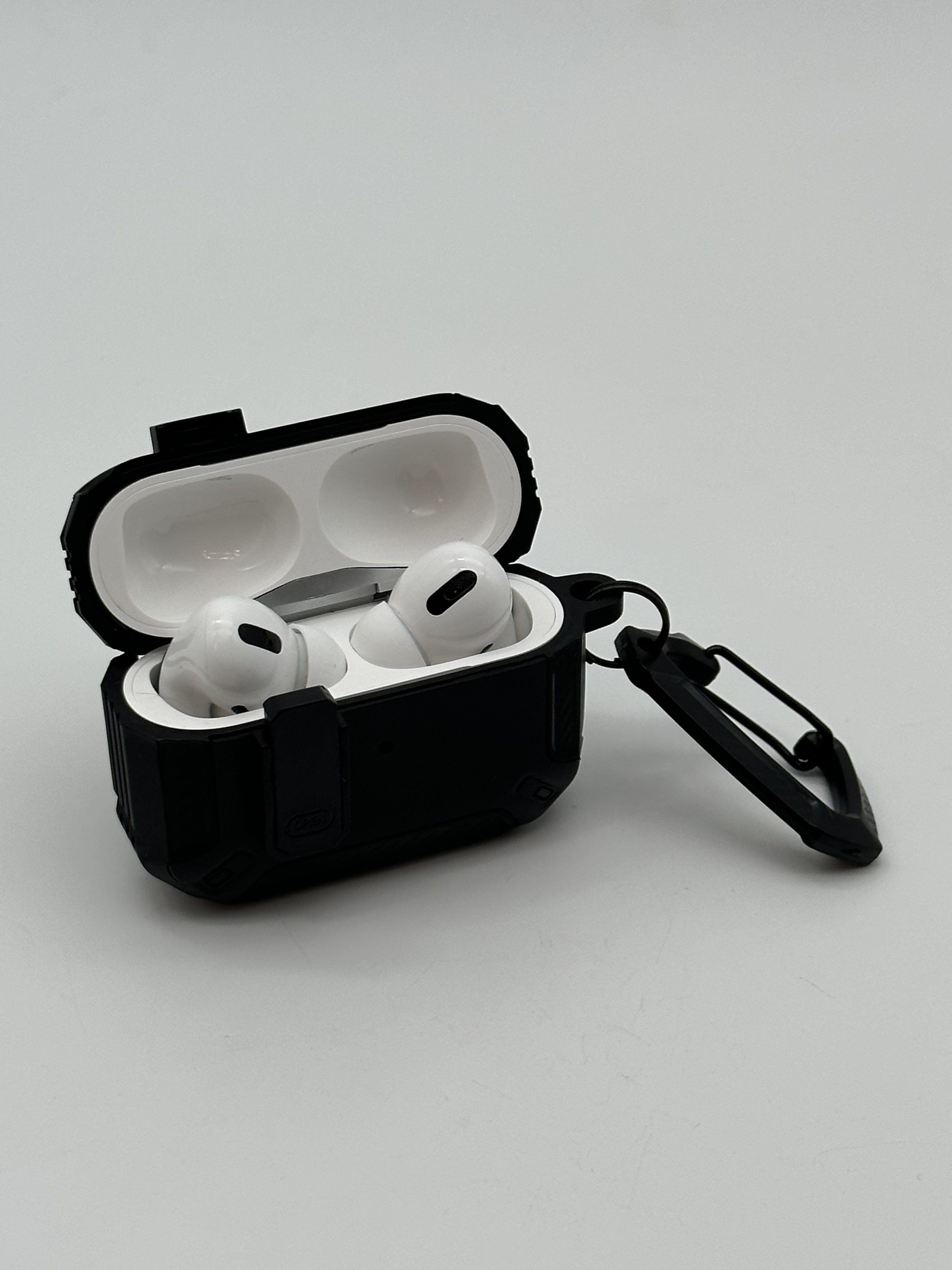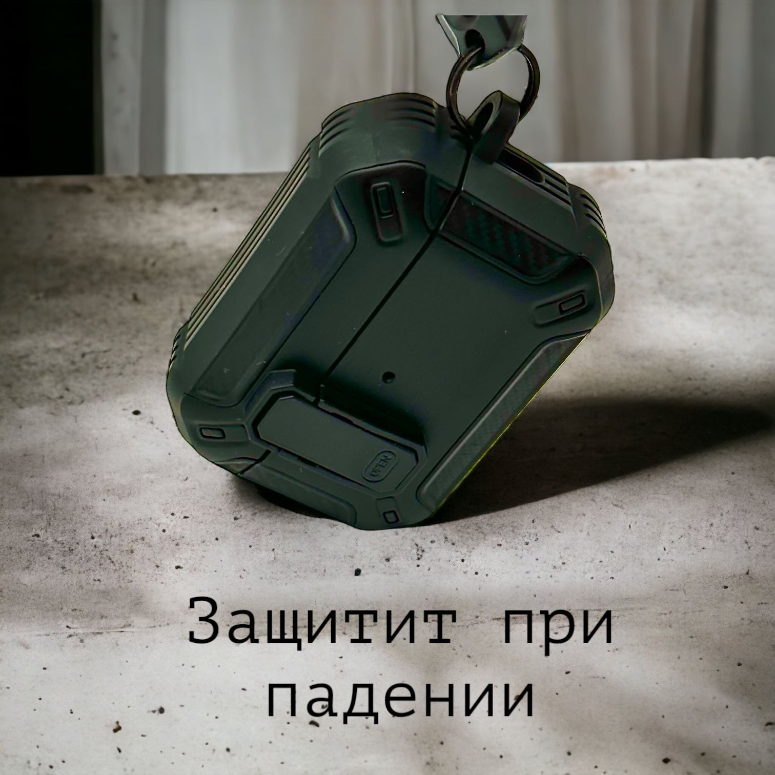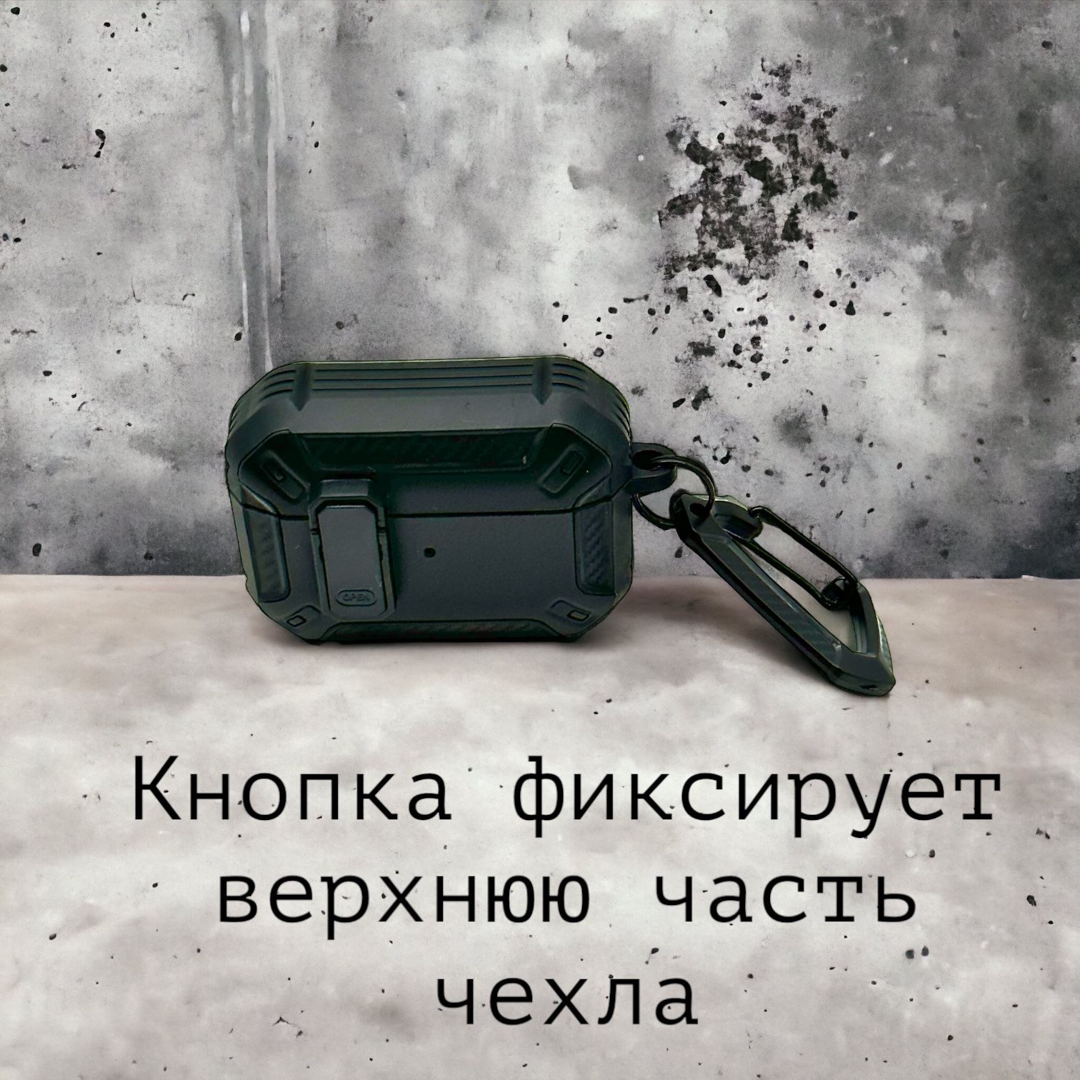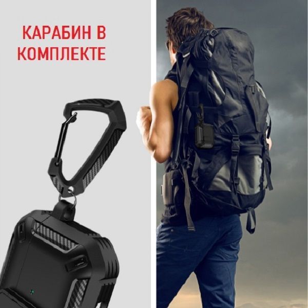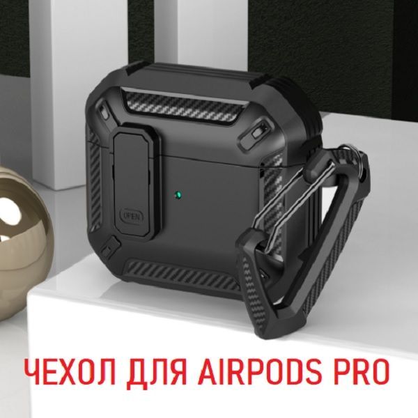 Описание: Чехол для AirPods ProУдаропрочный чехол для беспроводных наушников Apple AirPods Pro изготовлен из прочного материала TPU и оснащен надежным замком-клипсой для открывания, который обеспечивает полную защиту ваших Airpods pro от падений, царапин и ударов, сохраняя вашу технику в идеальном состоянии. Нажмите на кнопку Open и откройте крышку для доступа к своим наушникам. Фиксация на замок позволит исключить случайное открытие наушников.ФиксацияНаушники плотно сидят в чехле и можно не беспокоиться о том, что чехол слетит при открывании или падении, а это значит что можно быть уверенным в защите своих наушников.КарабинВ комплект к чехлу прилагается карабин. С его помощью можно прикрепить чехол к рюкзаку, сумке, ключам, к брюкам и т.д. Это позволит не потерять наушники и иметь наушники всегда под рукой.ЗащитаПокрытие самих наушников довольно скользкое, используя этот чехол у Вас не будут наушники выскальзывать из рук, а даже если случайно Вы уроните свои наушники, то чехол защитит от падения. Также благодаря чехлу Вы не поцарапаете корпус своих наушников. В итоге используя данный чехол Ваши наушники останутся в отличном и работоспособном состоянии. Лучше сразу позаботиться о защите своих наушников, чтобы они долгое время служили Вам и доставляли удовольствие от их использования.