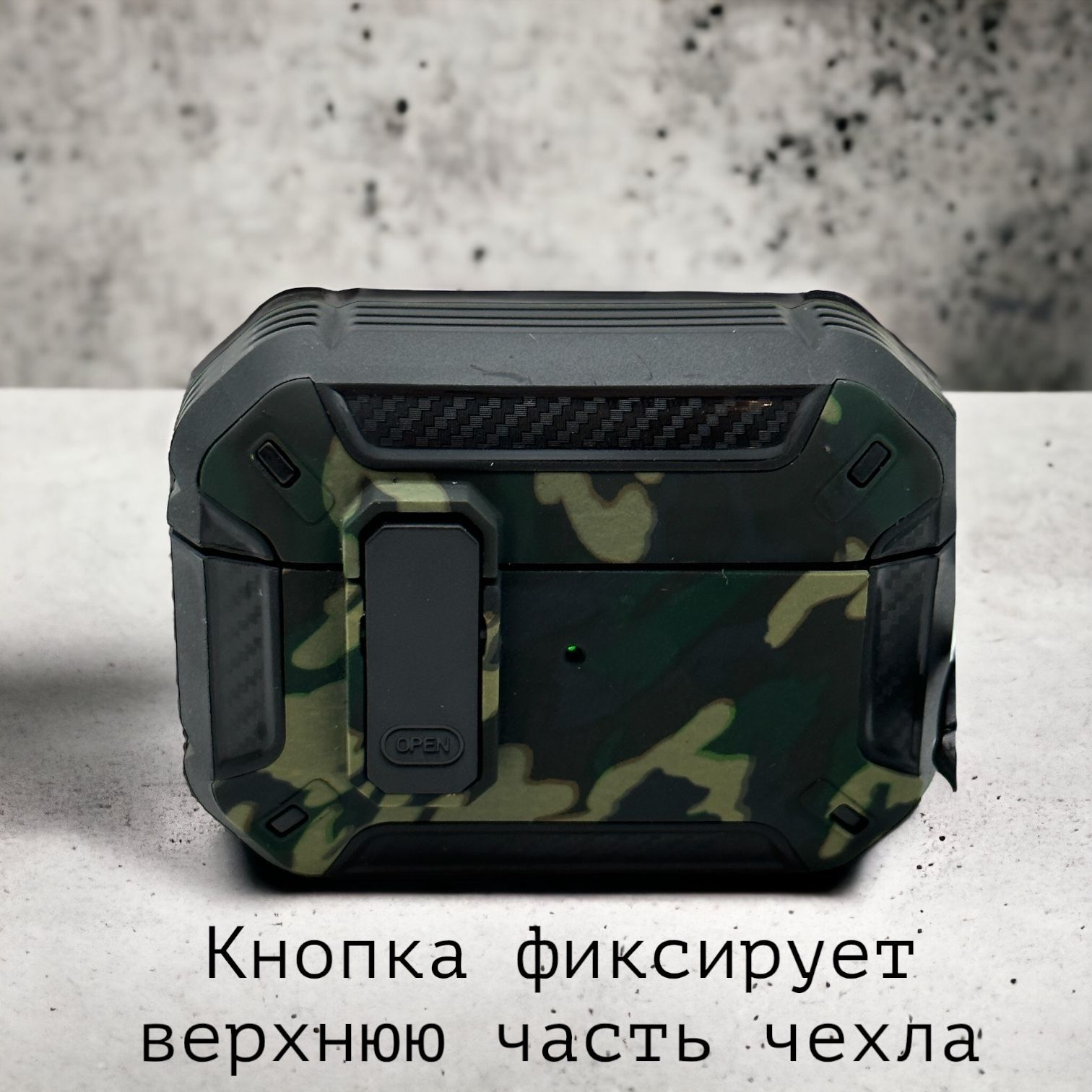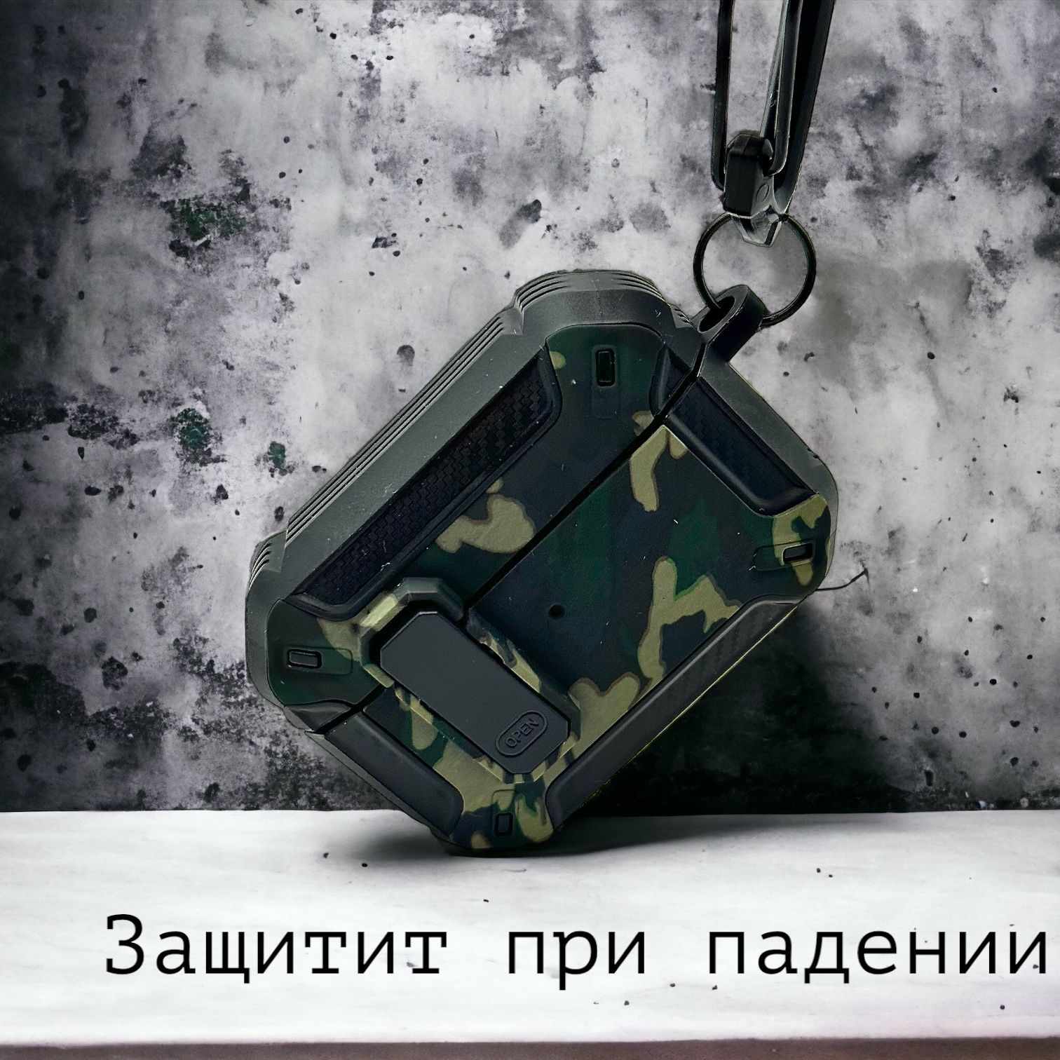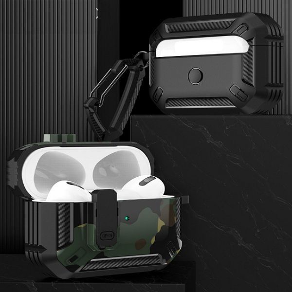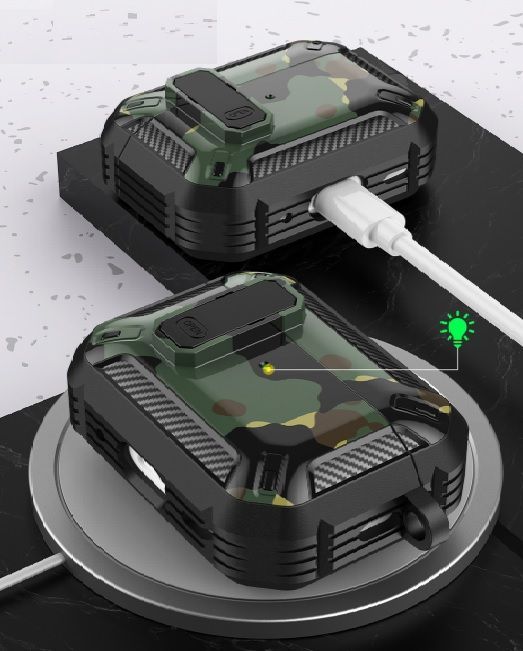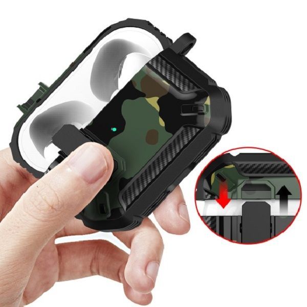 Описание: Чехол для AirPods ProУдаропрочный чехол для беспроводных наушников Apple AirPods Pro изготовлен из прочного материала TPU и оснащен надежным замком-клипсой для открывания, который обеспечивает полную защиту ваших Airpods pro от падений, царапин и ударов, сохраняя вашу технику в идеальном состоянии. Нажмите на кнопку Open и откройте крышку для доступа к своим наушникам. Фиксация на замок позволит исключить случайное открытие наушников. ОсобенностиНаушники плотно сидят в чехле и можно не беспокоиться о том, что чехол слетит при открывании или падении, а это значит что можно быть уверенным в защите своих наушников. Точные вырезы позволяют пользоваться чехлом не снимая и используя все функции наушников.