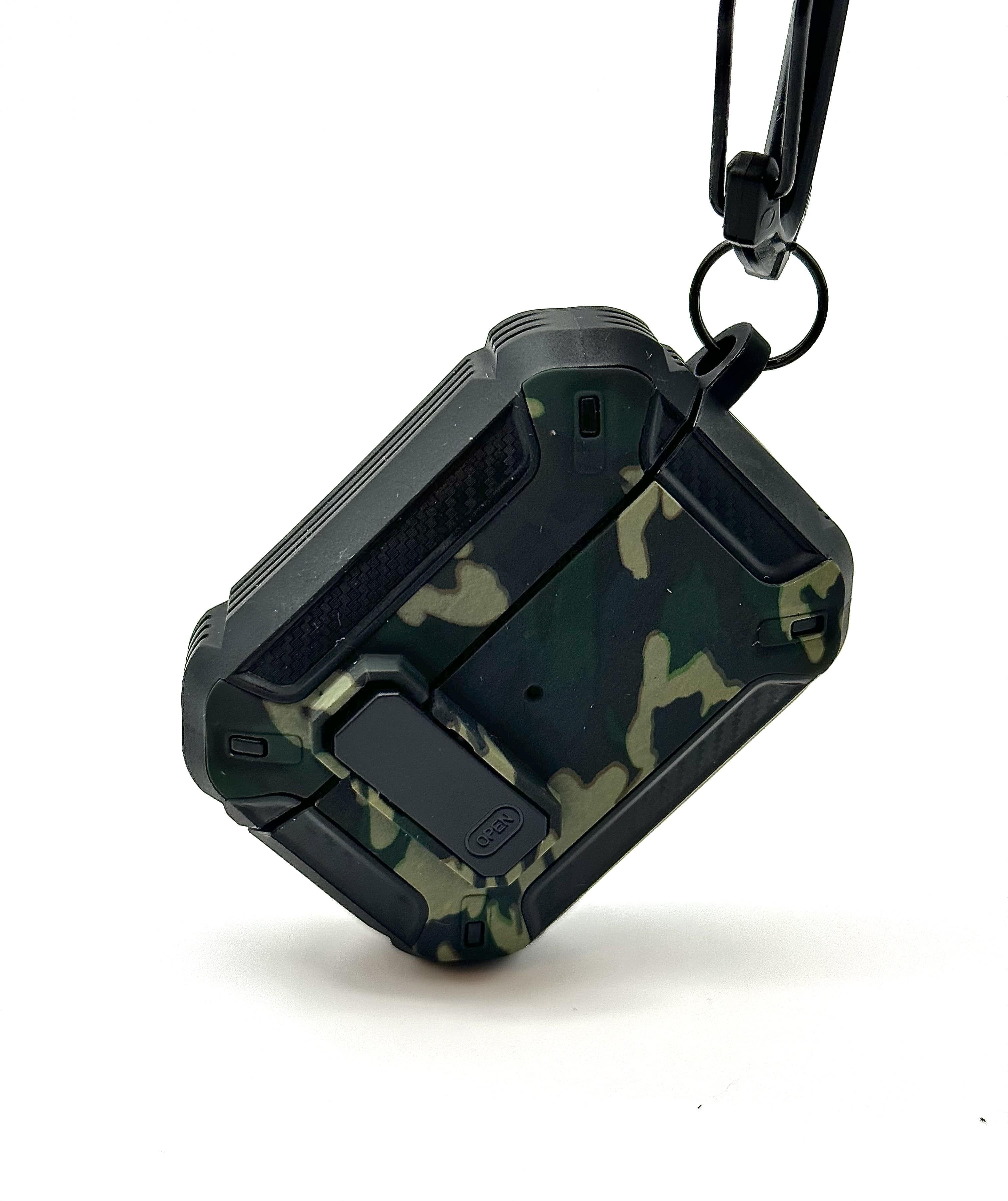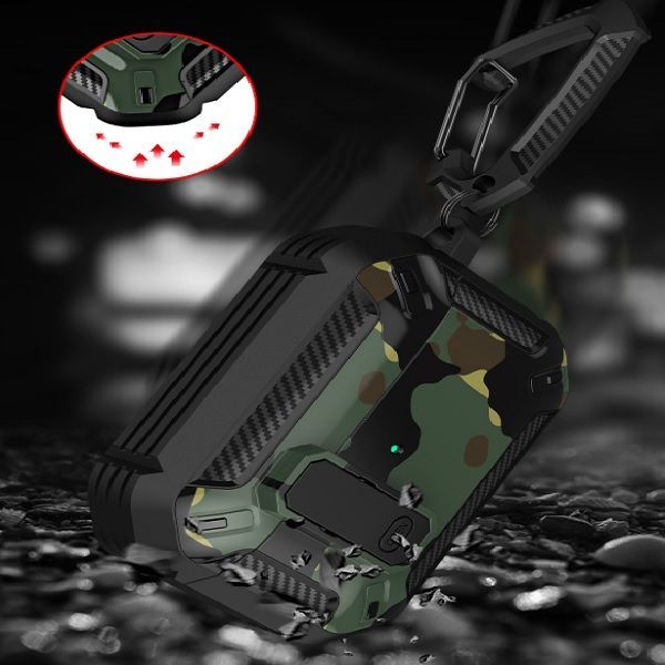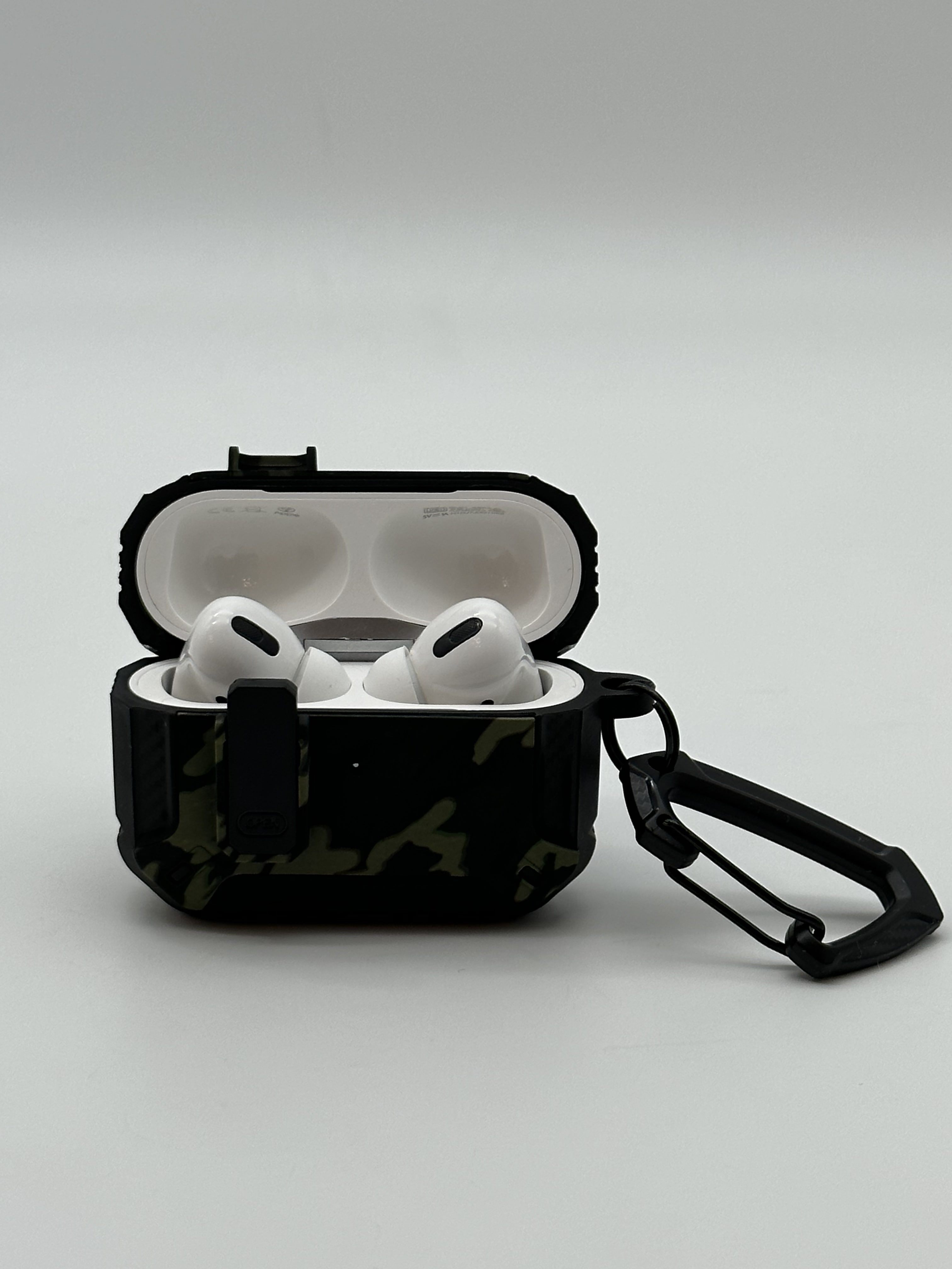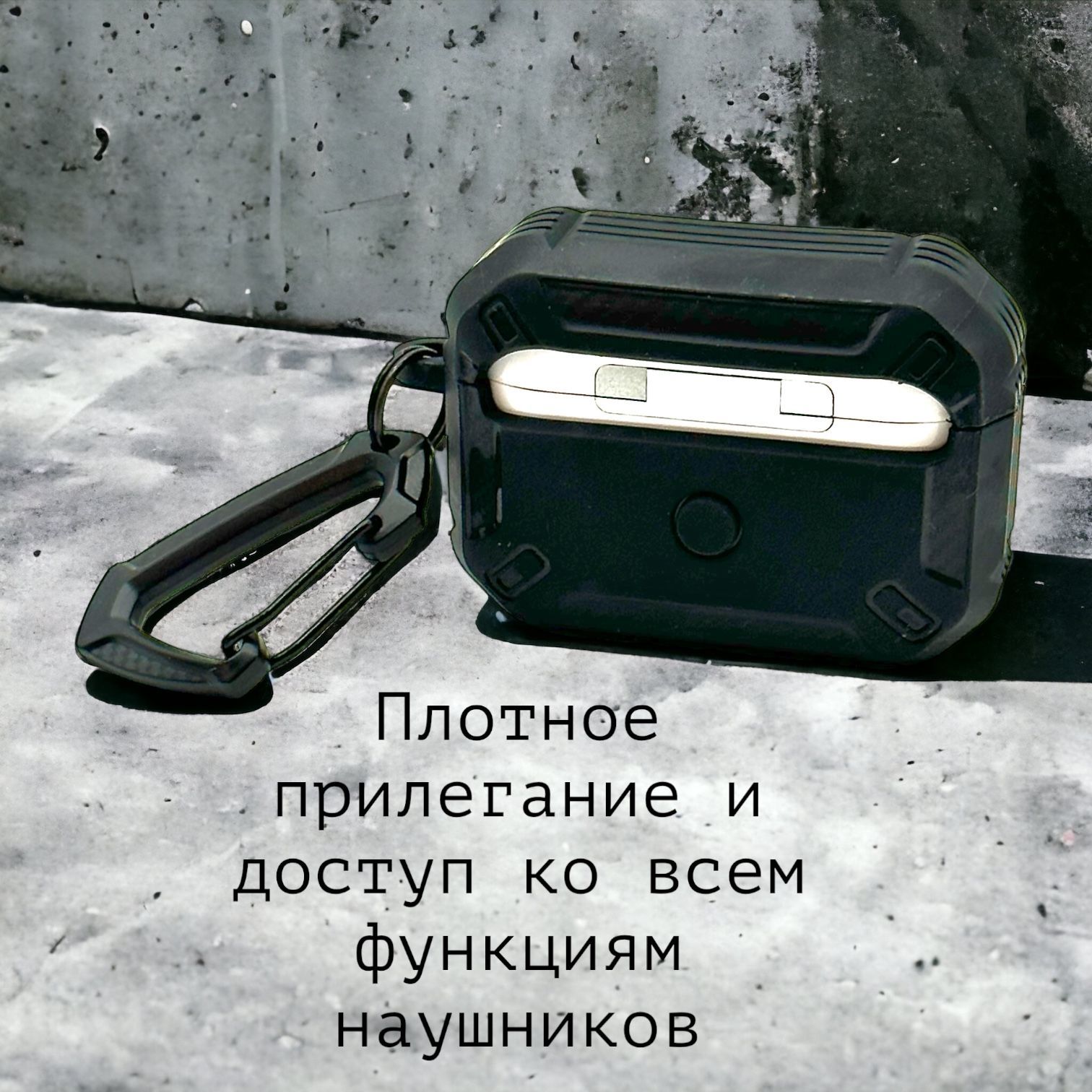 Описание: Чехол для AirPods ProУдаропрочный чехол для беспроводных наушников Apple AirPods Pro изготовлен из прочного материала TPU и оснащен надежным замком-клипсой для открывания, который обеспечивает полную защиту ваших Airpods pro от падений, царапин и ударов, сохраняя вашу технику в идеальном состоянии. Нажмите на кнопку Open и откройте крышку для доступа к своим наушникам. Фиксация на замок позволит исключить случайное открытие наушников. ОсобенностиНаушники плотно сидят в чехле и можно не беспокоиться о том, что чехол слетит при открывании или падении, а это значит что можно быть уверенным в защите своих наушников. Точные вырезы позволяют пользоваться чехлом не снимая и используя все функции наушников.