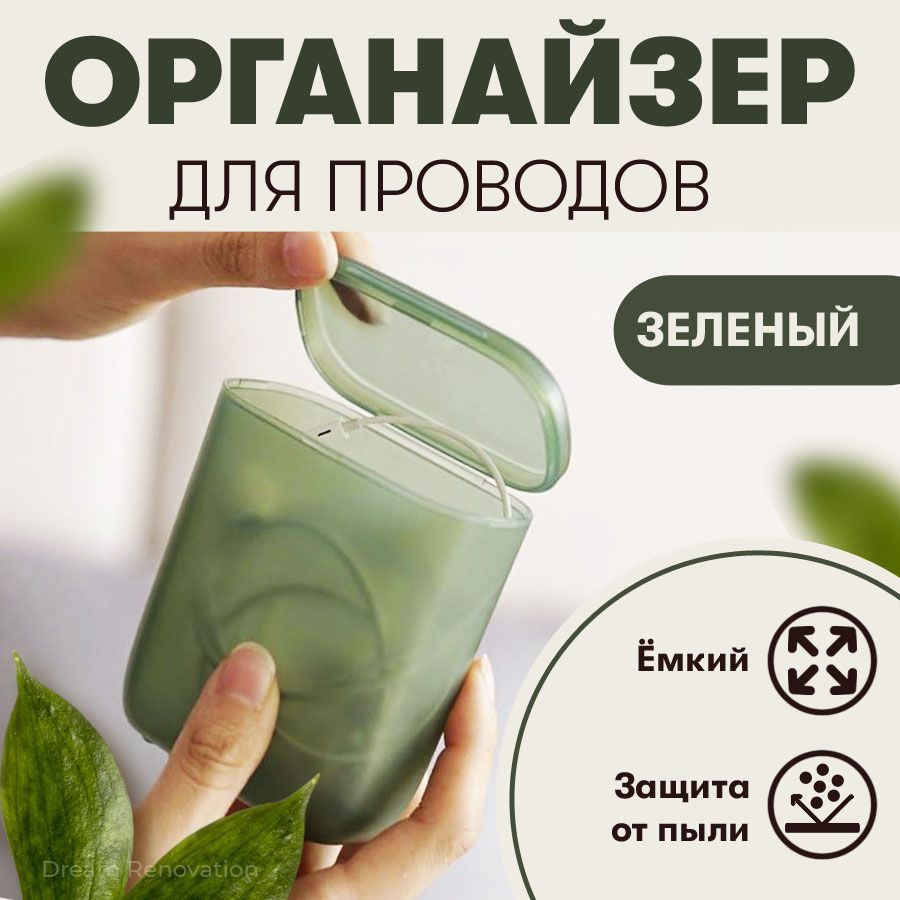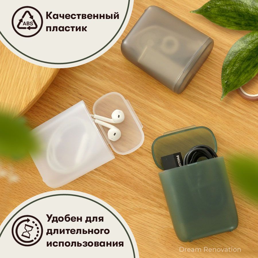 Чехол для наушников и кабелей, органайзер для проводов, пластиковый, 7,8 х 9 см, зеленый