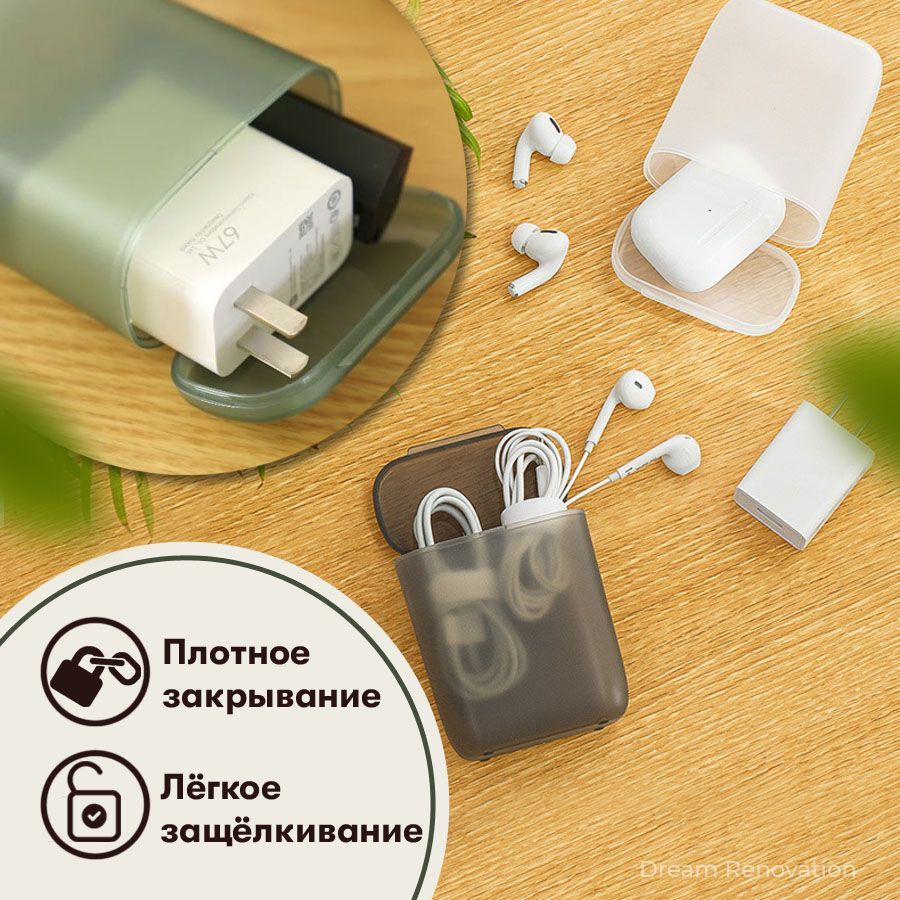 Описание: Органайзер для проводовНаш пластиковый чехол для наушников и кабелей является идеальным решением для хранения и организации ваших проводов. Забудьте о спутывание проводовС помощью нашего чехла вы можете организовать свои провода в порядке и избежать запутывания, что сэкономит ваше время и упростит вашу жизнь. Качественные пластикПрочный материал предотвращает путаницу проводов и защищает их от повреждений.