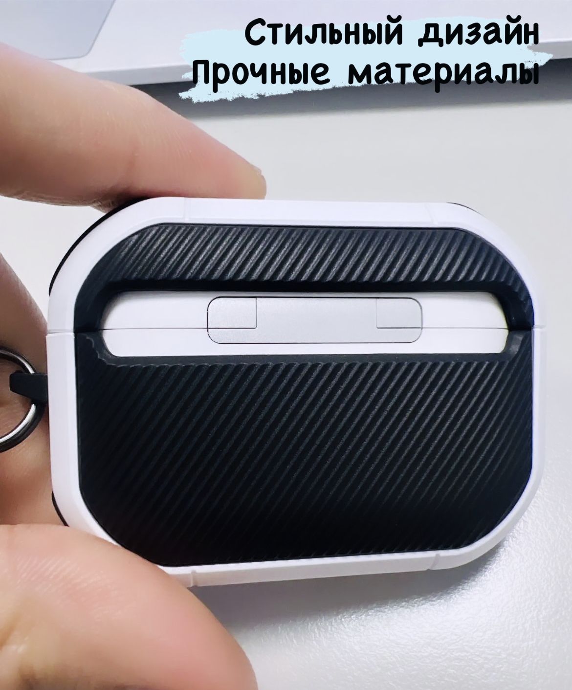 • В комплекте идет карабин для закрепления AirPods для большей безопасности;