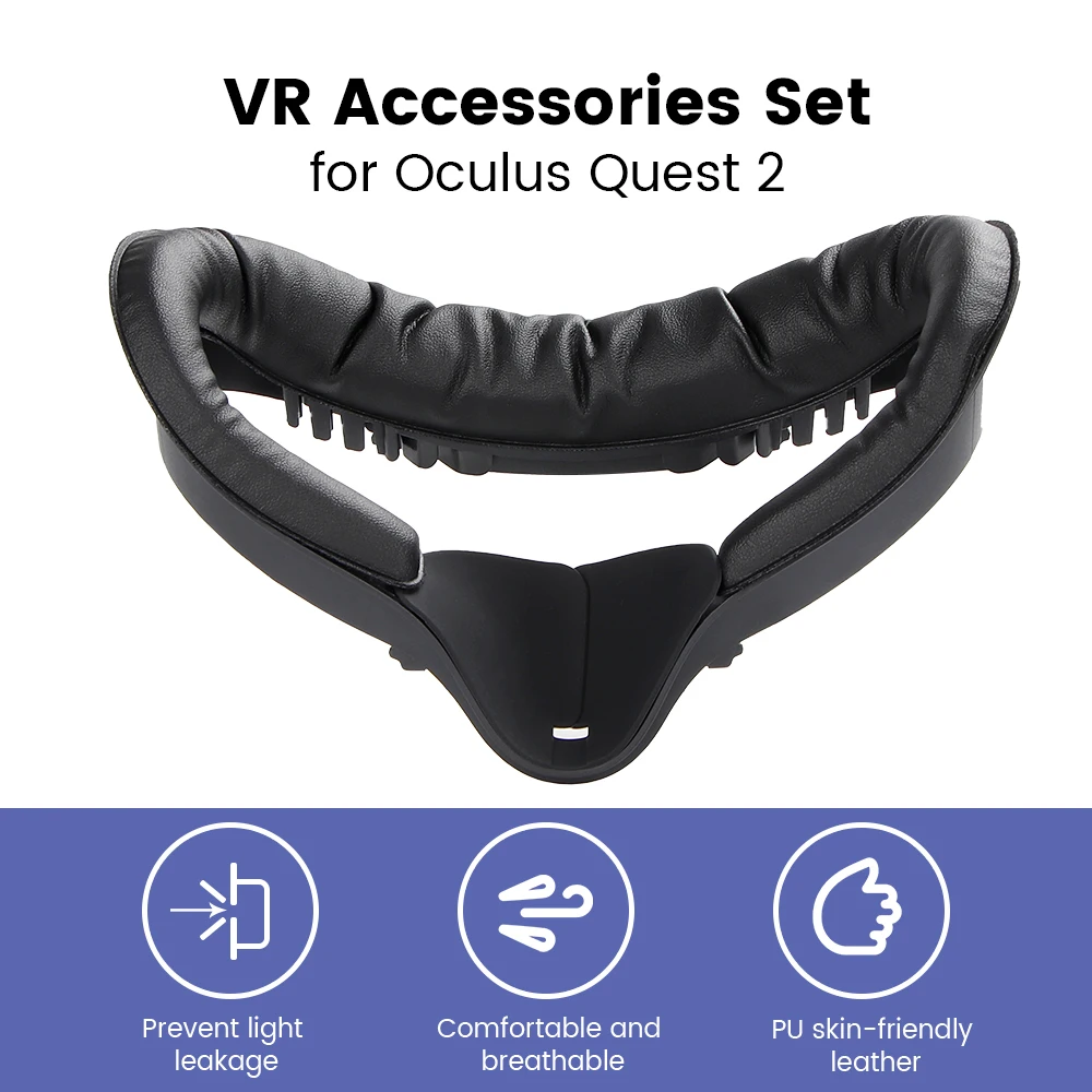 1. Удобно и гигиенично. Подушечка для лица изготовлена из мягкой искусственной кожи, которая может сделать вашу гарнитуру VR защищенной от пота, делая ваши длительные сеансы VR более комфортными И гигиеничными, и можно поделиться с семьей или друзьями.
