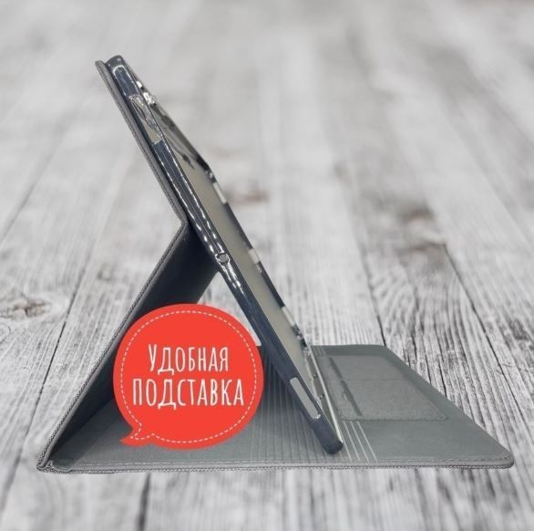 Все необходимые отверстия для доступа к функциональным портам и разъемам планшета. Режим горизонтальной подставки, которая имеет два уровня наклона, обеспечивает комфортный просмотр, что очень удобно при работе на планшете или просмотре видео всей семьей. Технология Smart Case обеспечивает экономию батареи планшета, благодаря его автоматическому переводу в спящий режим при закрытии кейса, и активацию, при открытии крышки чехла.