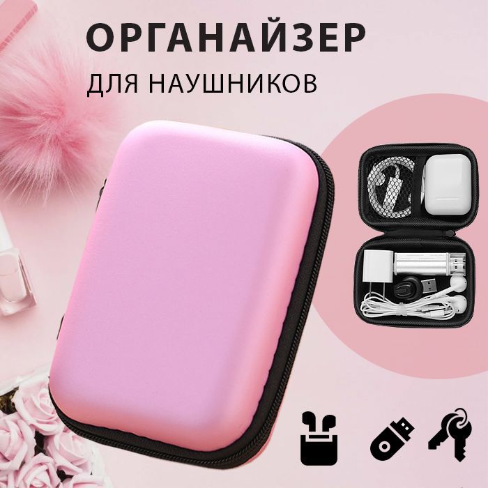 Описание: Универсальный органайзер, розовыйУниверсальный органайзер для хранения и переноски наушников, зарядок, ключей, mp3 плеера, usb кабеля, флешек, карт памяти. Обладает жёстким плетённым внешним покрытием которое надежно защитит содержимое.