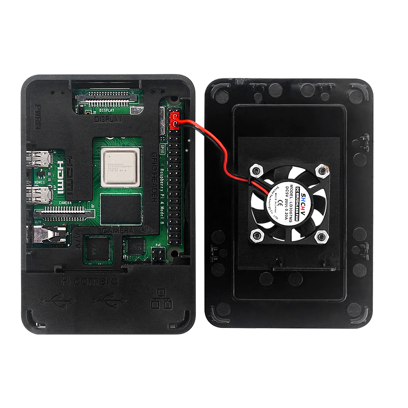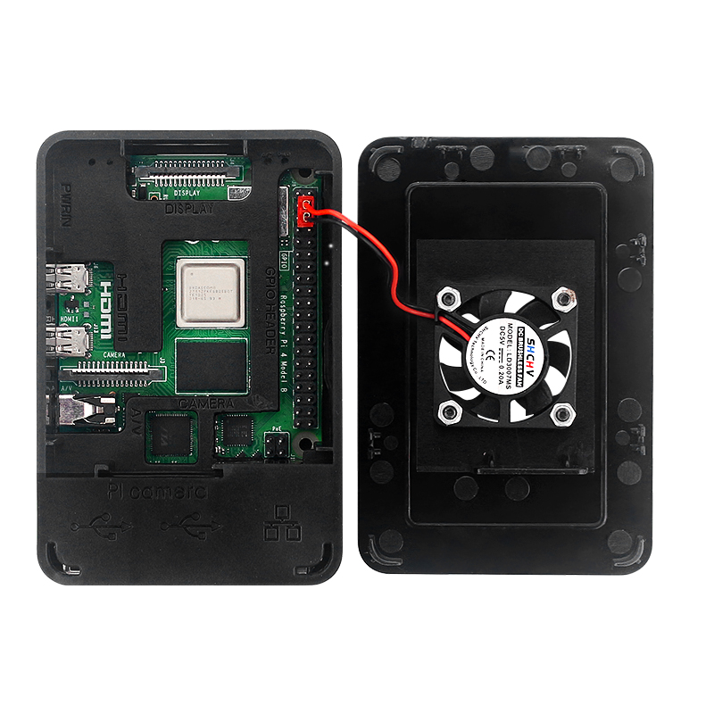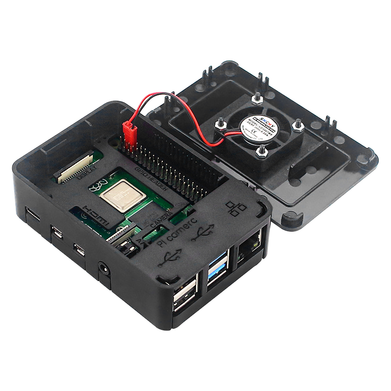 Это чехол ABS, предназначенный для Raspberrry Pi 4 Model B. Мы специально оставляем место на обложке чехол для установки вентилятора охлаждения, чтобы решить проблему рассеивания тепла Raspberry Pi 4. Вентилятор охлаждения является дополнительным по ссылке. Обратите внимание, что эта ссылка не включает Raspberry Pi в посылка.