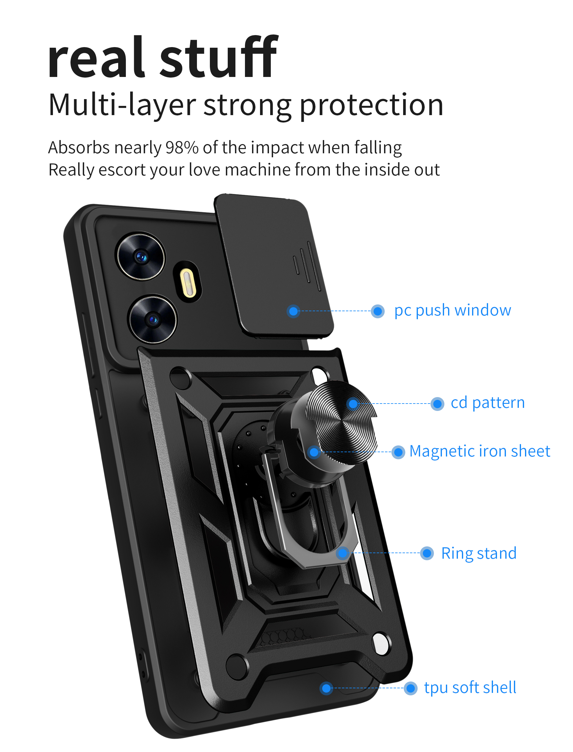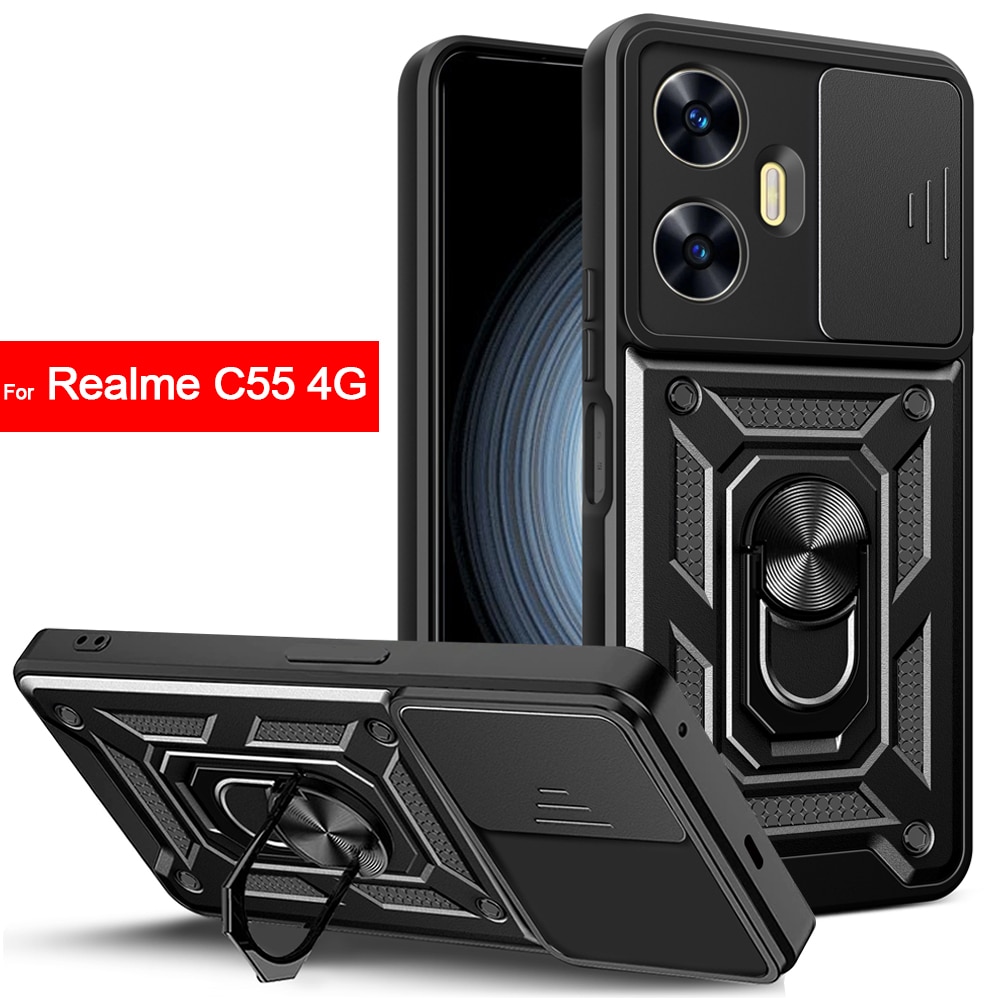 Чехол для Realme C55 4G фотообъектив задняя крышка Магнитный держатель кольцо Стенд противоударный чехол