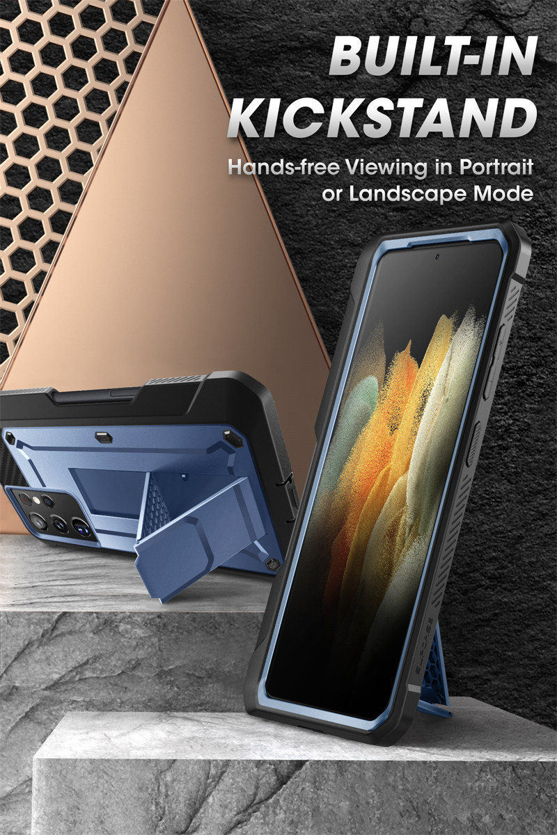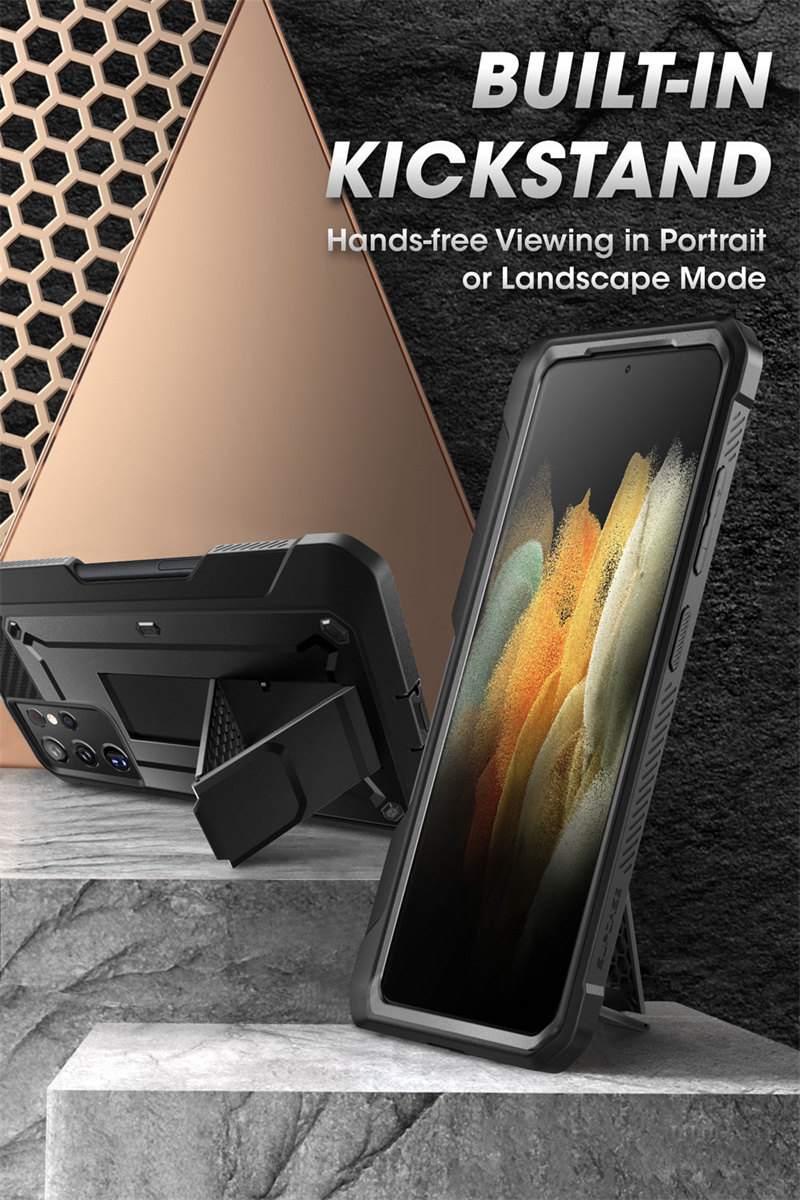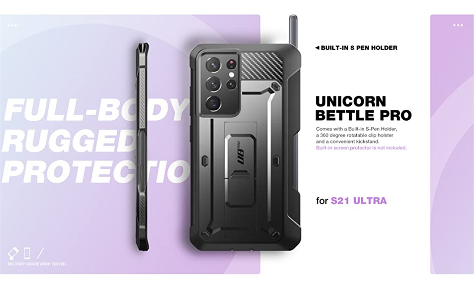 Укрепите свой Galaxy S21 Ultra с легендарным Unicorn Beetle Pro от SUPCASE! Тонкий, прочный и предназначенный для избиения, вы будете наслаждаться защитой на 360 ° от грязи, пыли, капель и даже детей! Упакованный с поликарбонатом ТПУ, точными вырезами и бонусной подставкой для видеоконтента в режиме громкой связи, он действительно соответствует своей репутации.