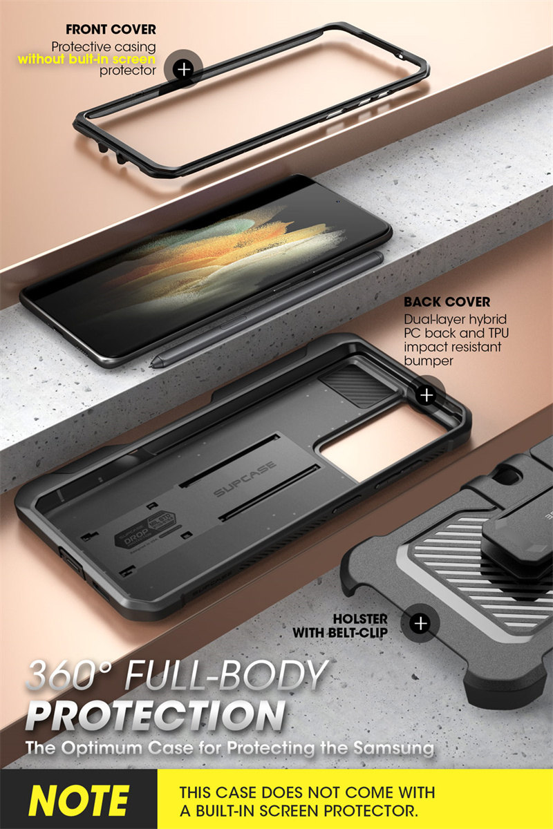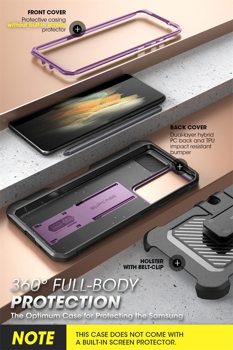 Чехол для Samsung Galaxy S21 Ultra 5G (выпуск 2021) SUPCASE UB Pro, двухслойная прочная кобура с подставкой и S-образным слотом для ручки