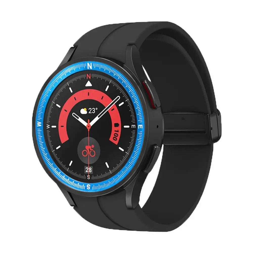 Материал: алюминиевый сплав Размер модели: 45 мм Совместимость с Samsung Galaxy Watch 5 Pro Стиль: Хронограф/компас Высокое качество и Новинка Посылка: 1 x ободок для часов Советы Без часов и других аксессуаров