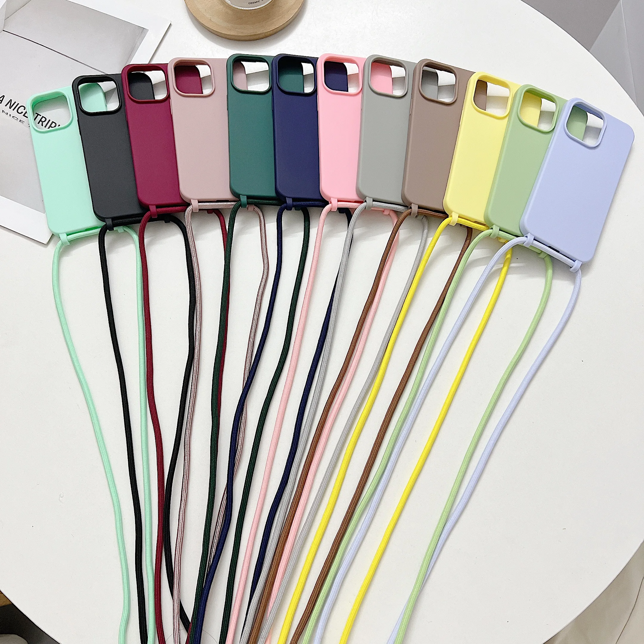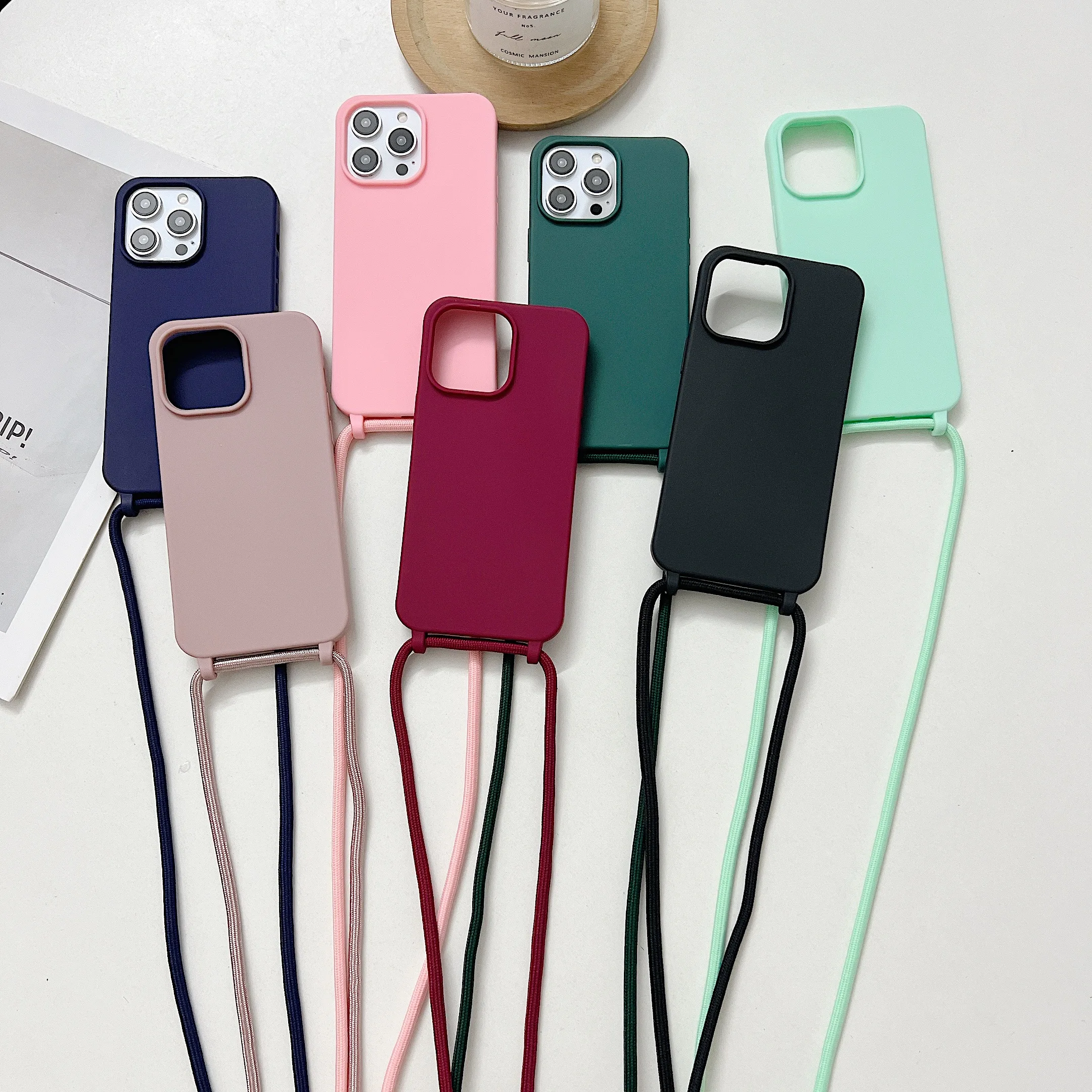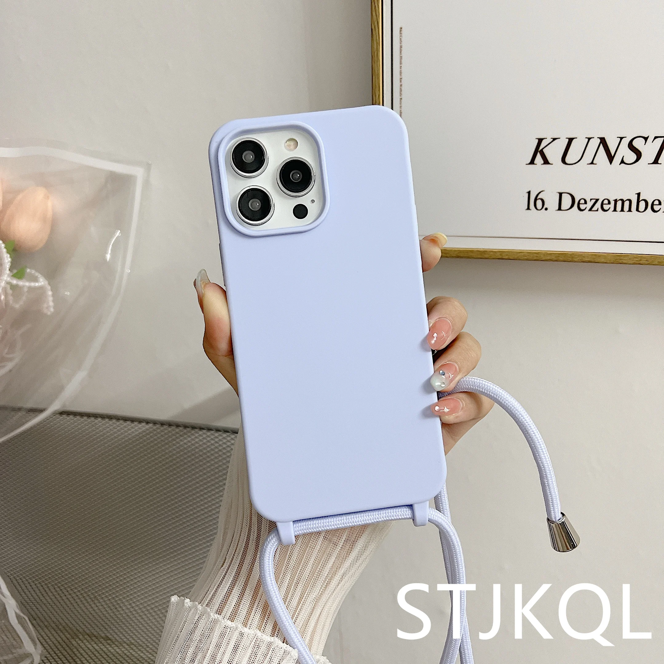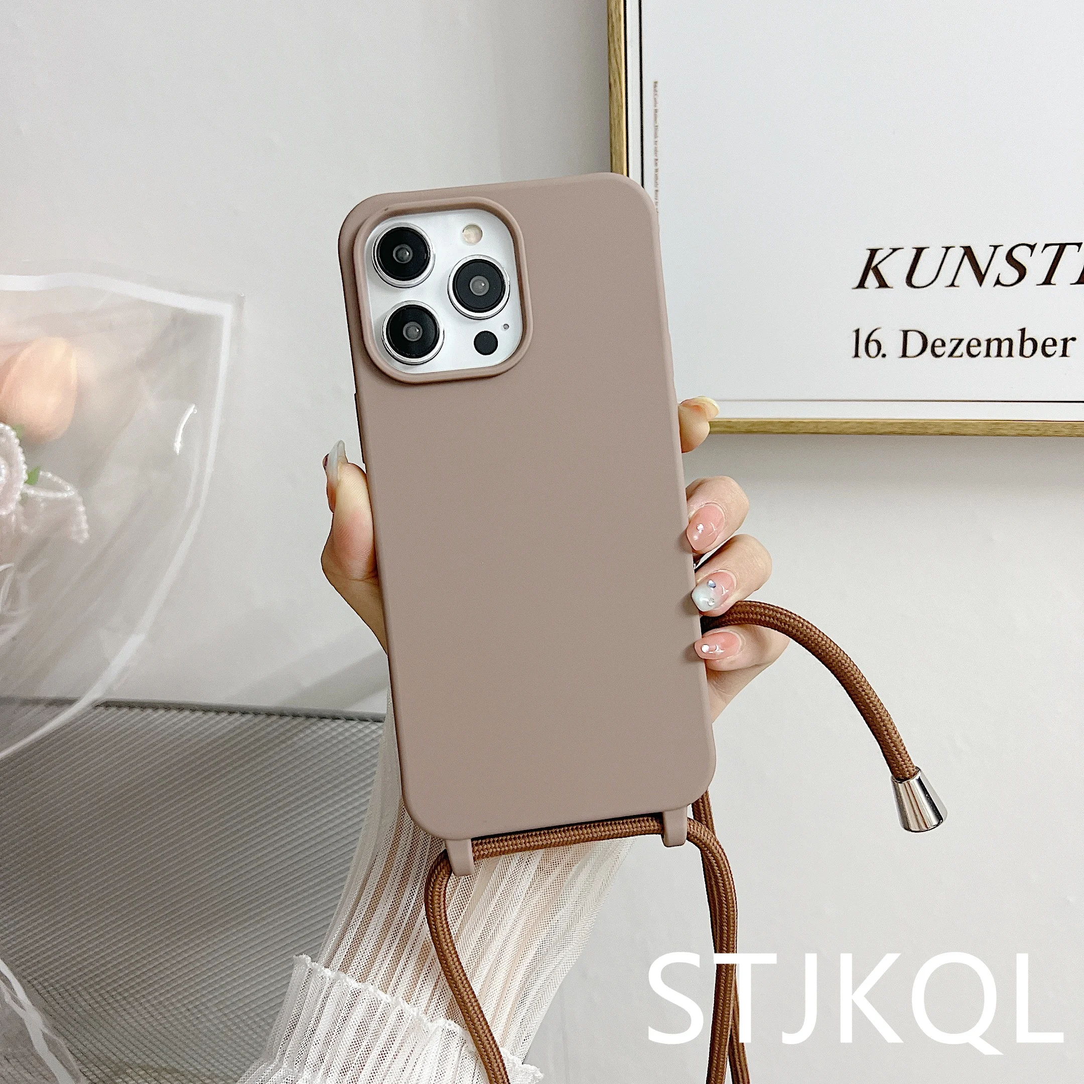 Чехол для телефона из жидкого силикона с цепочкой для Iphone 14, 13, 12 Pro, 11 Pro, Xs Max, Xr, 6, 7, 8 plus, Se